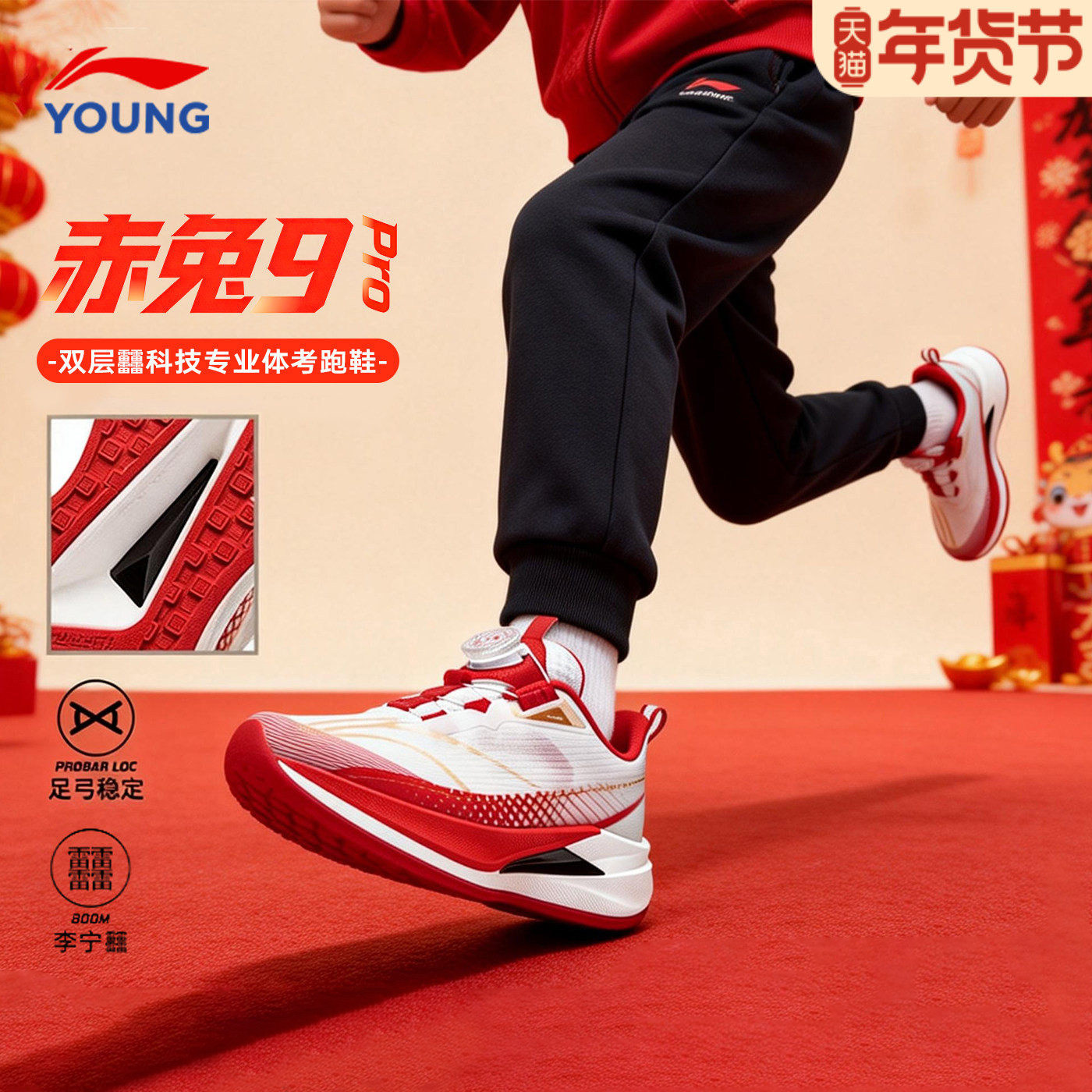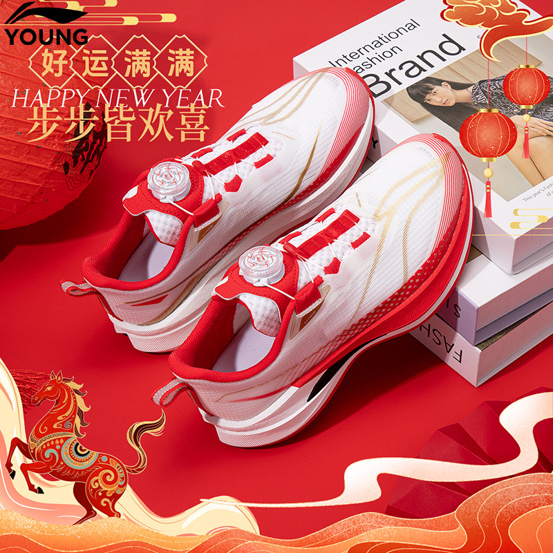 李宁儿童赤兔9PRO跑鞋26马年红色正品男大童旋转扣减震耐磨运动鞋