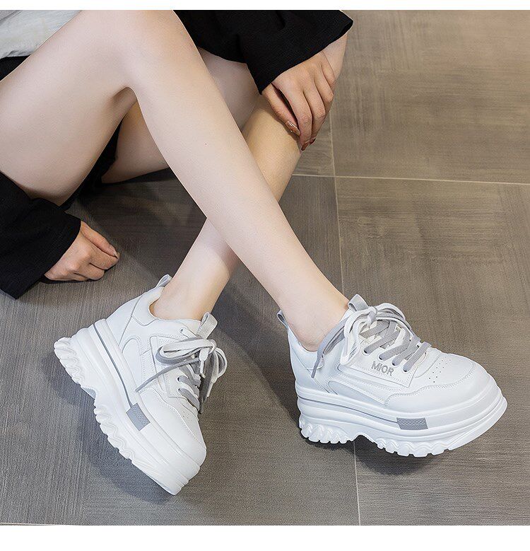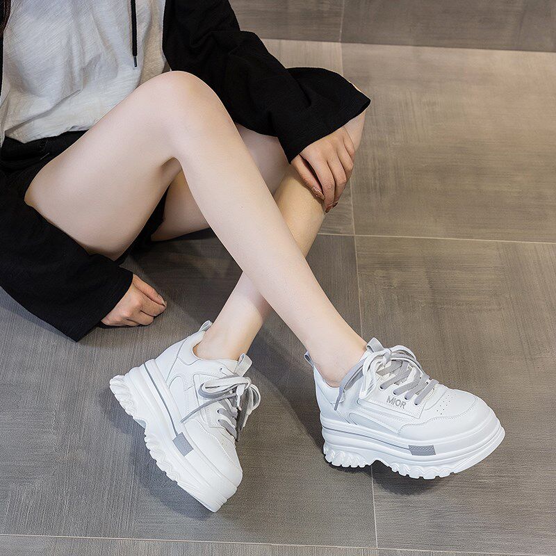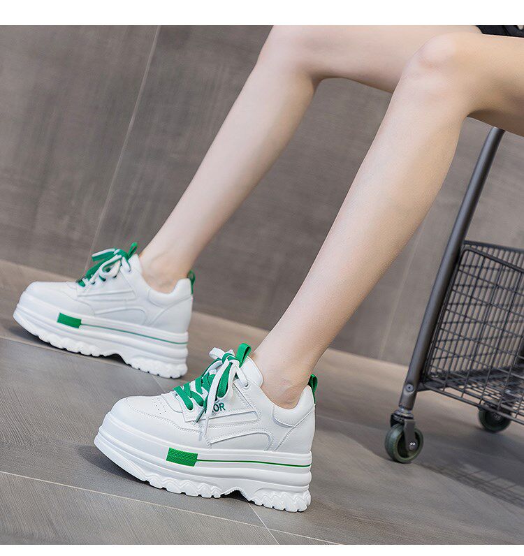 欧洲站厚底老爹鞋女2024春秋新款透气内增高小白鞋真皮炸街松糕鞋