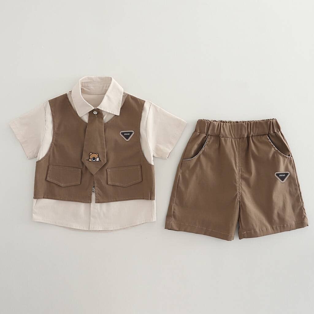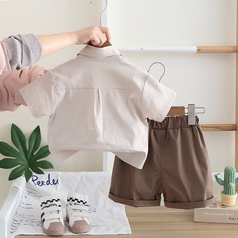 男童夏装套装夏季2025新款帅气小童时髦短袖衬衫裤子宝宝两件套潮