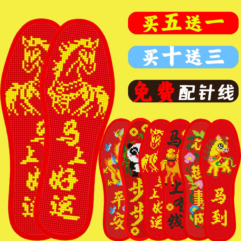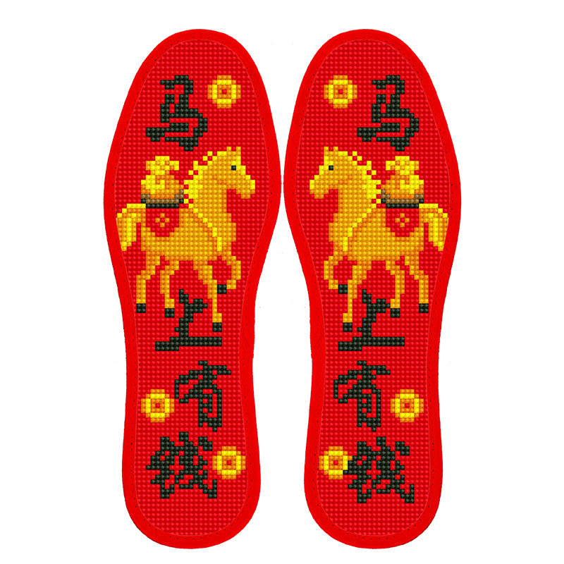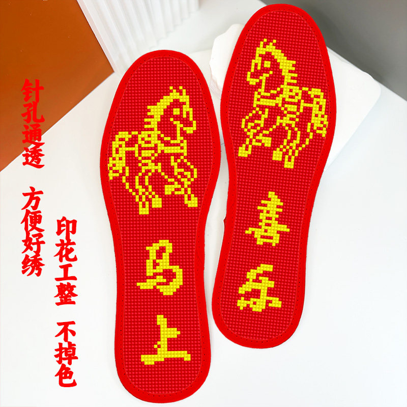 2026新款半成品十字绣鞋垫手工刺绣本命年红鞋垫自己绣花男款女士