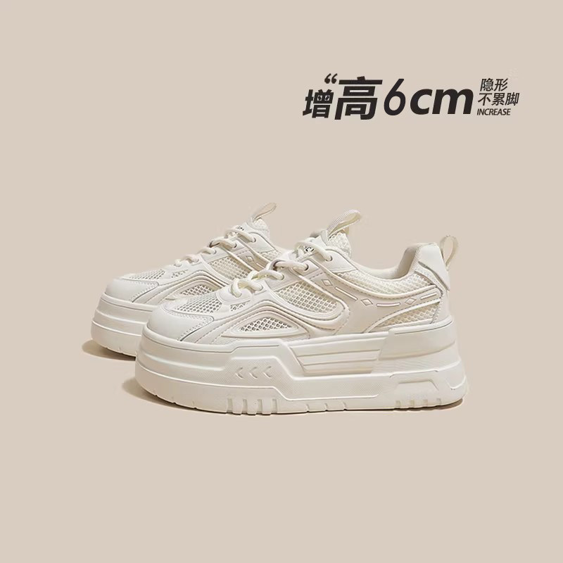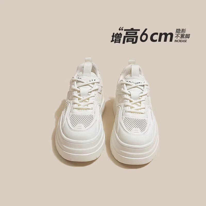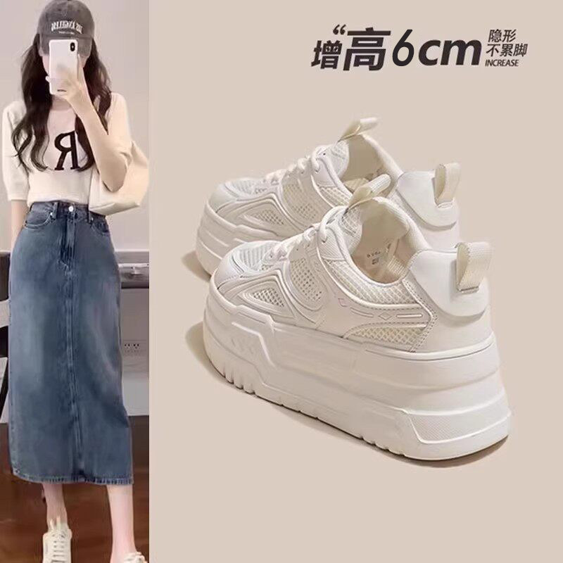 松糕厚底内增高女鞋子2026新款夏网面透气薄款小白鞋休闲运动板鞋