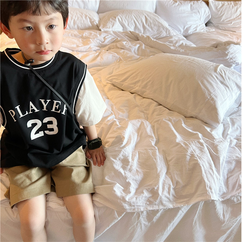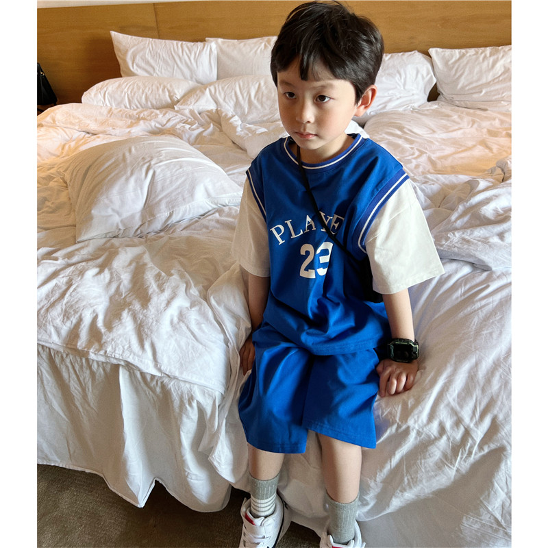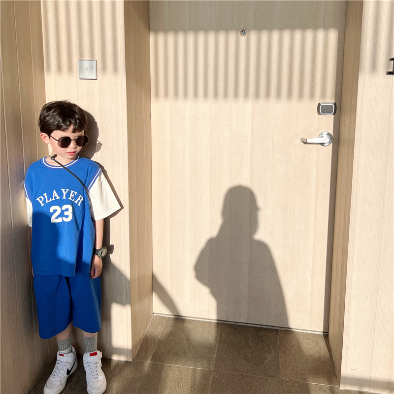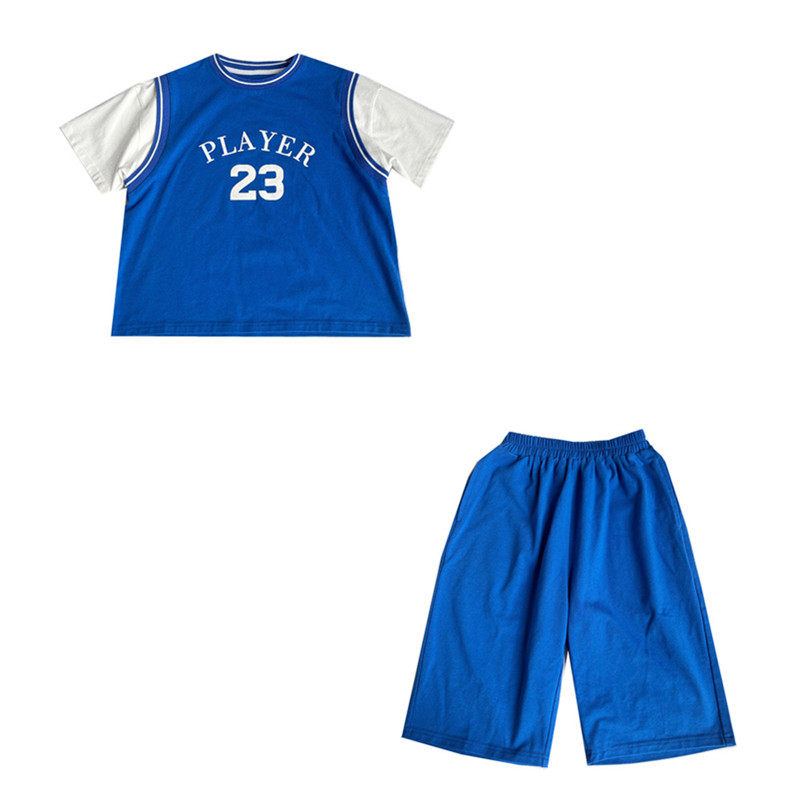 童童妈定制男女童韩版宽松纯棉运动套装T恤+短裤夏季短袖6分裤子