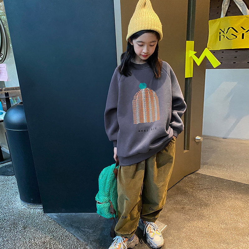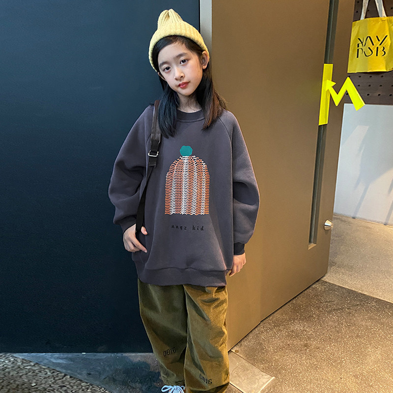 女童卫衣春装2026新款韩版中大童洋气时髦休闲纯棉宽松加绒上衣潮