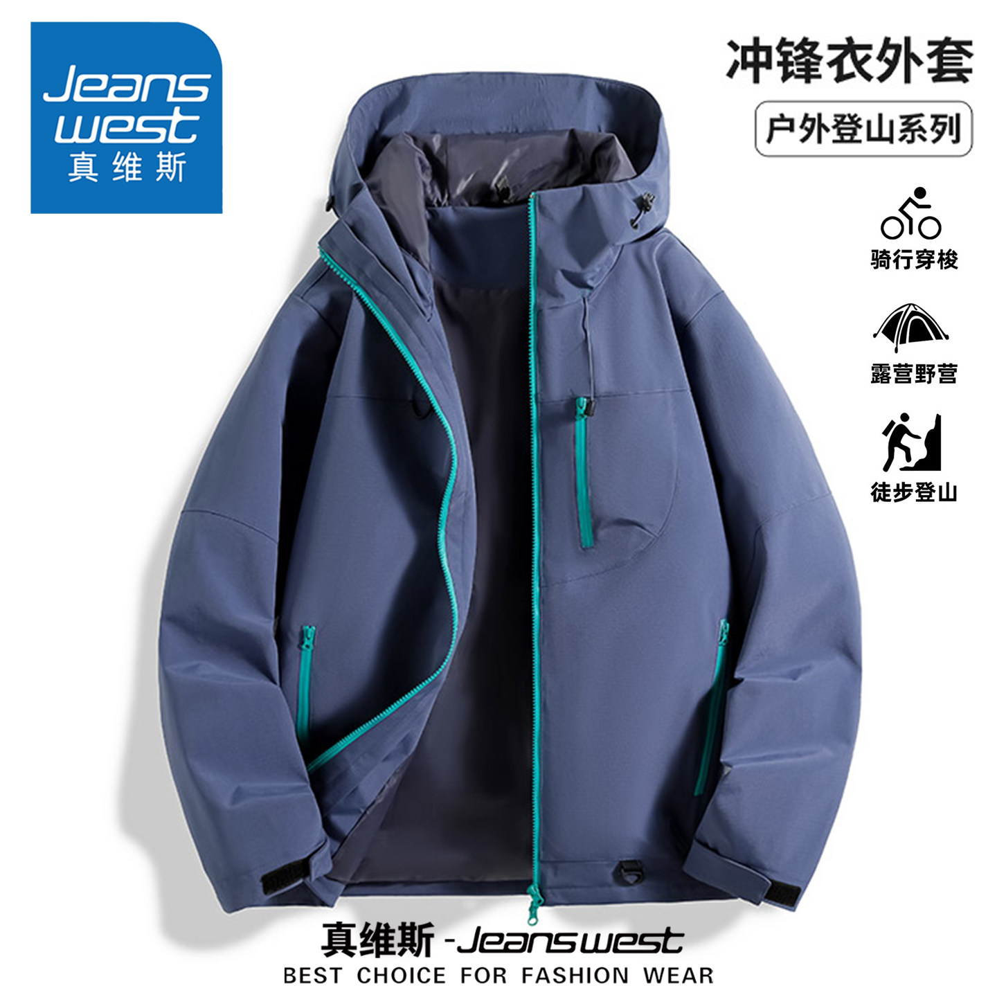 真维斯冲锋衣外套男女款春秋季户外三合一可拆卸三防百搭登山夹克