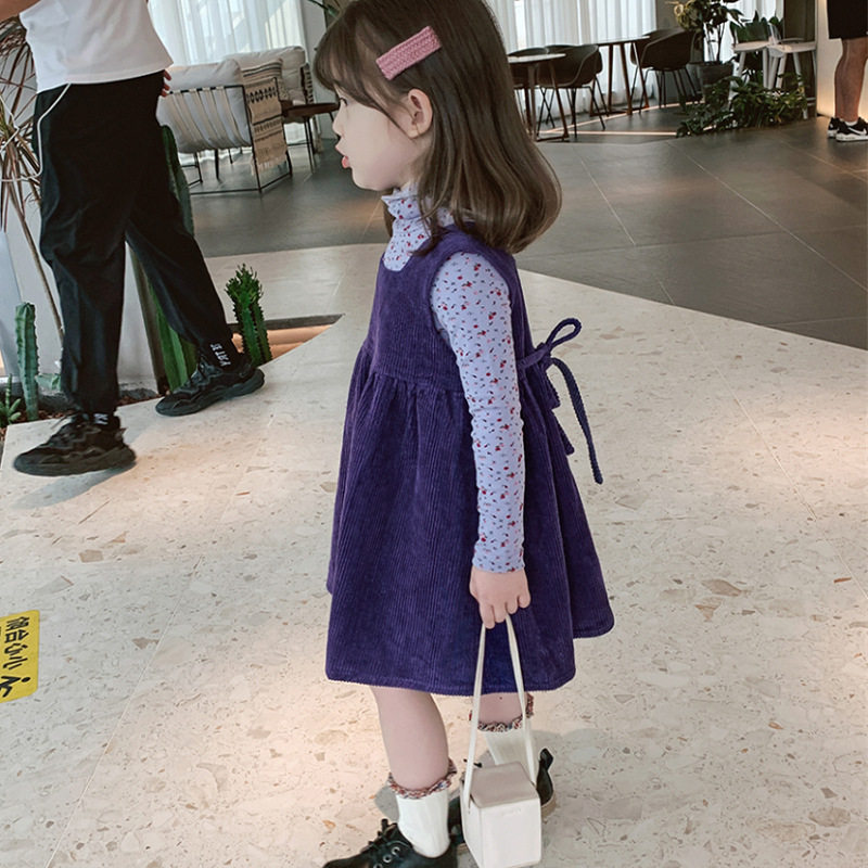 女童裙子灯芯绒淑女背心裙24秋冬装新款外贸童装儿童3-8岁连衣裙