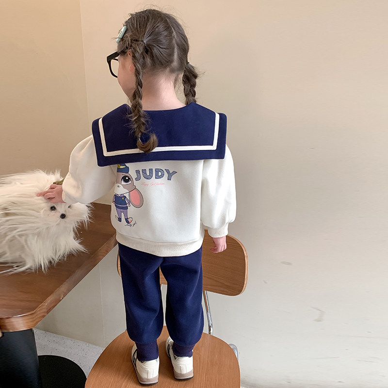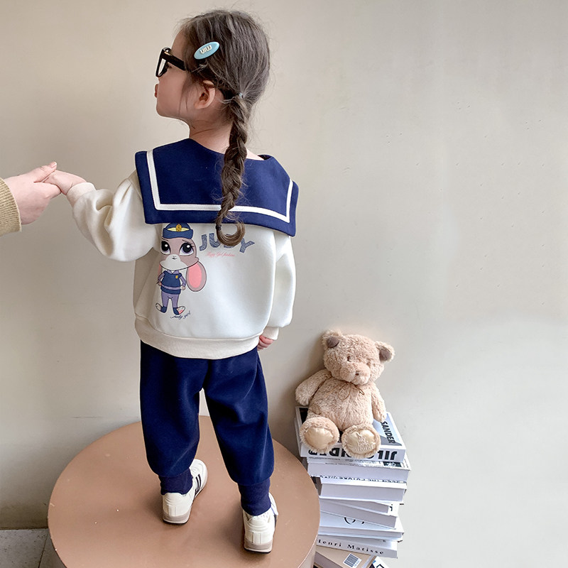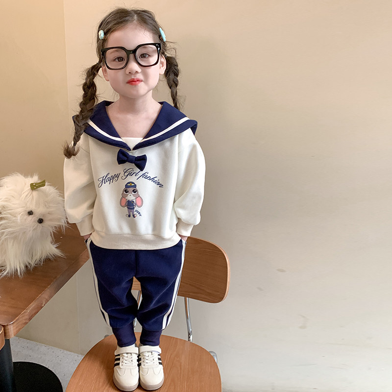 女童春秋套装2026新款洋气时髦儿童蓝兔女宝宝春季春装学院风卫衣