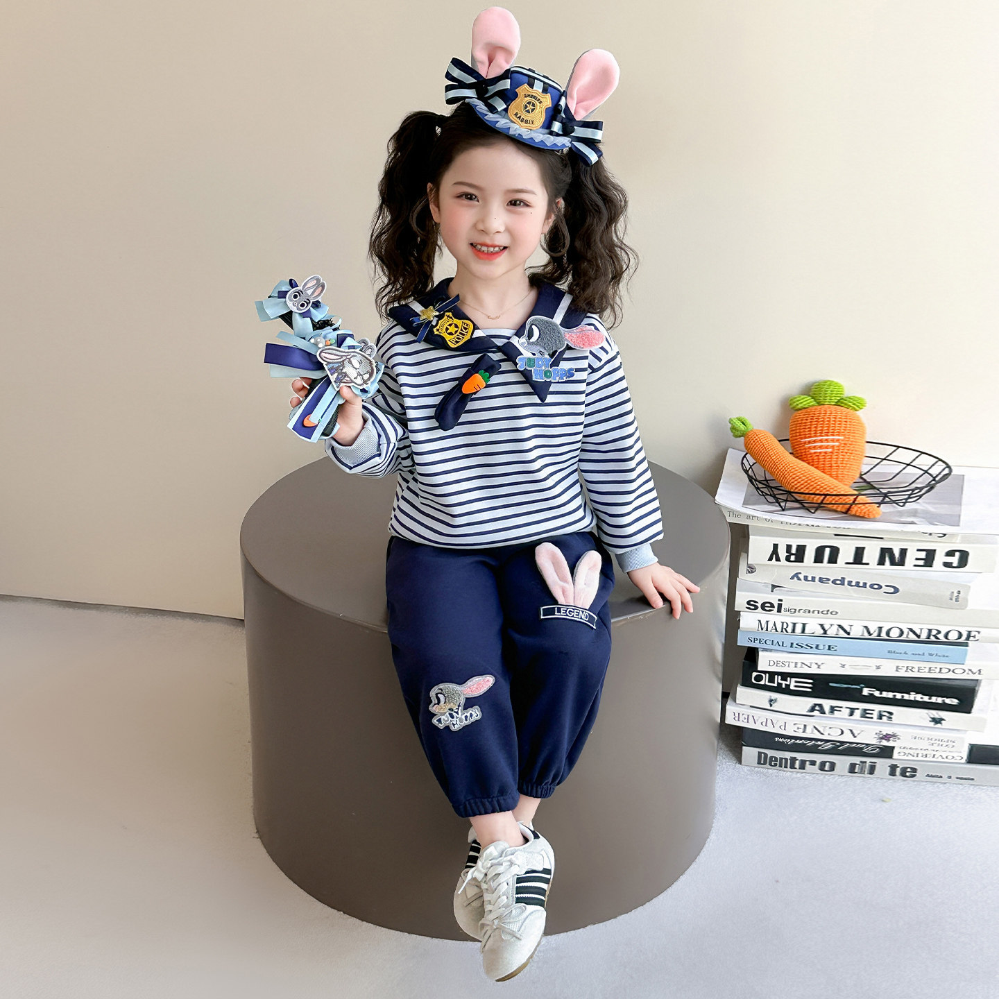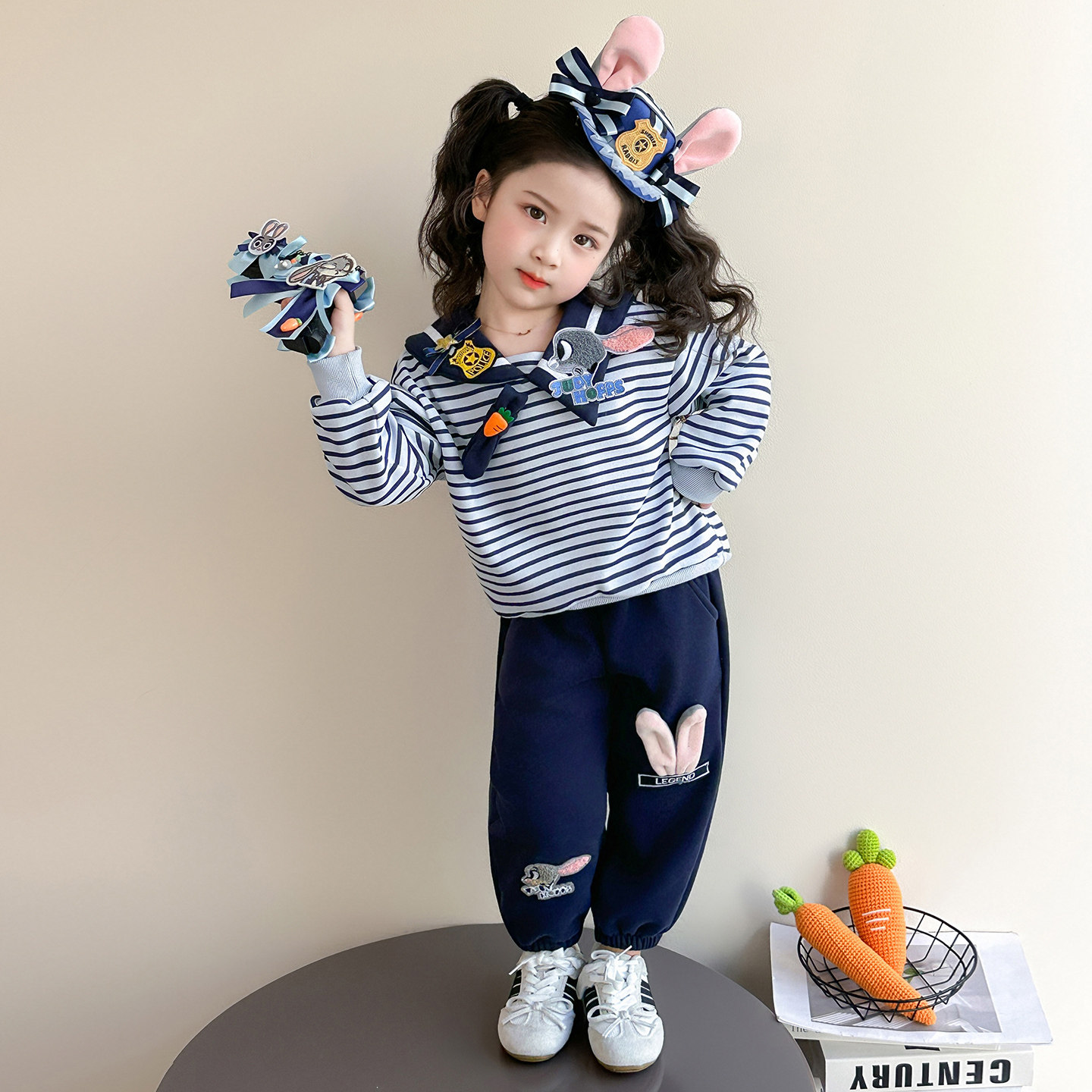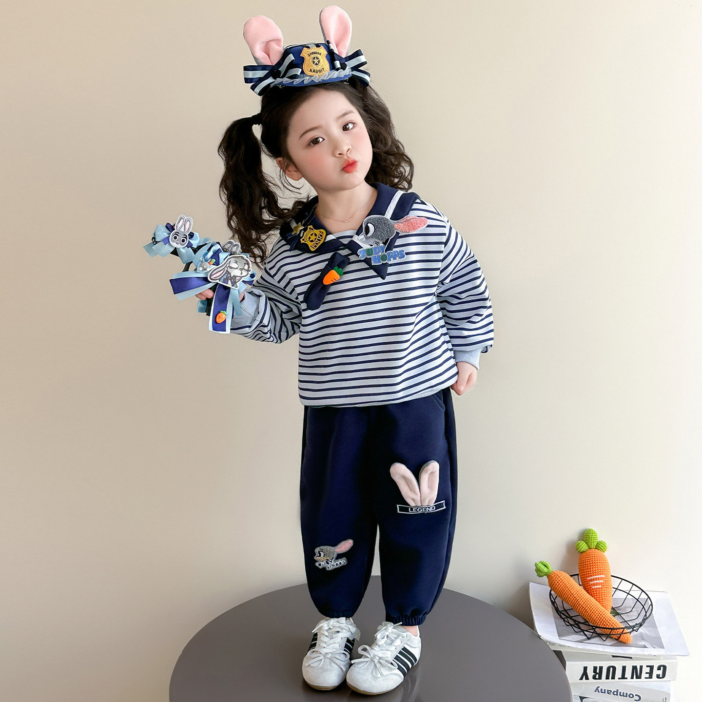 女童春秋款蓝兔套装2026新款洋气时髦儿童女宝宝春季春装早春卫衣