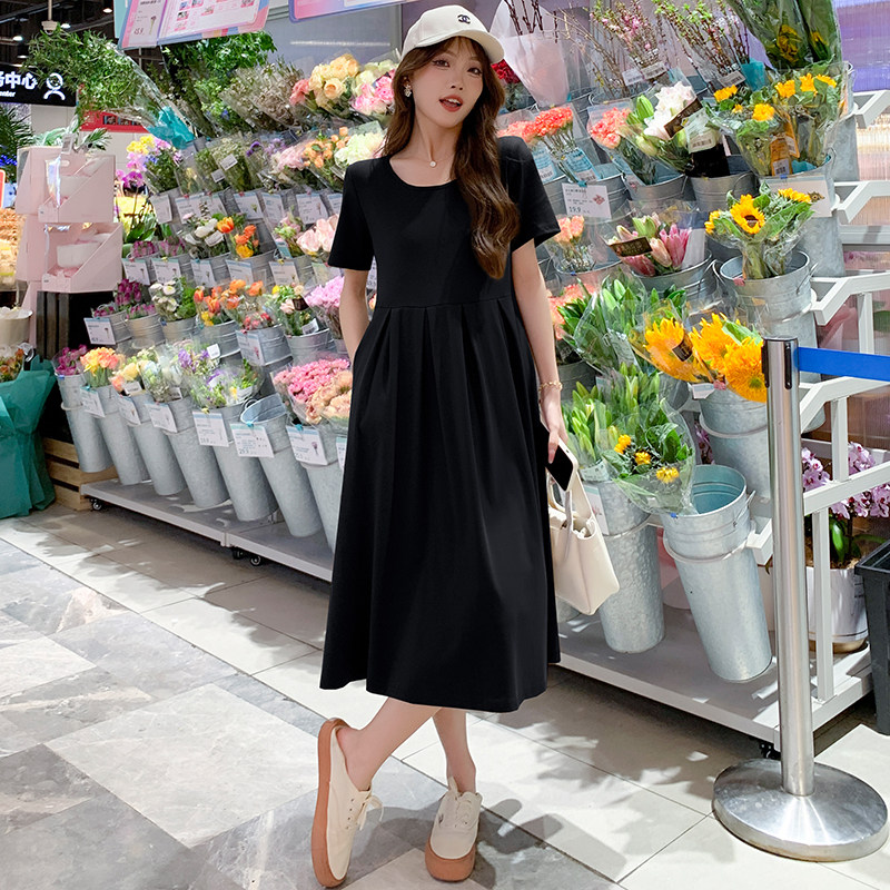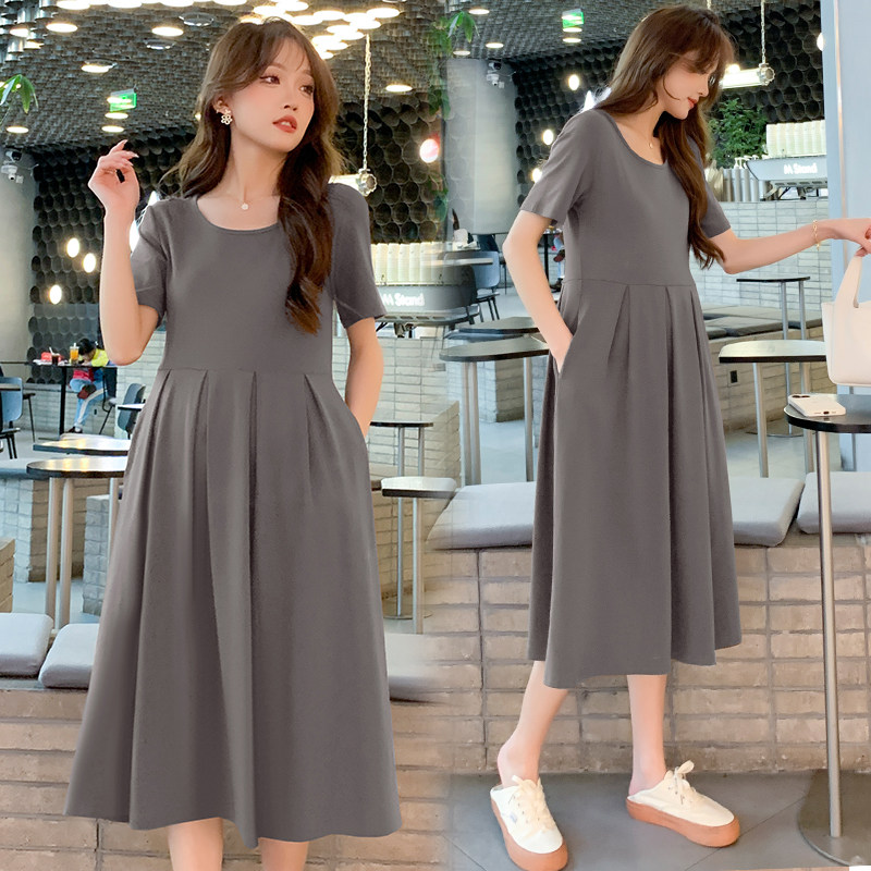 大码孕妇夏季薄款连衣裙时尚纯色莫代尔百褶裙宽松短袖T恤裙200斤