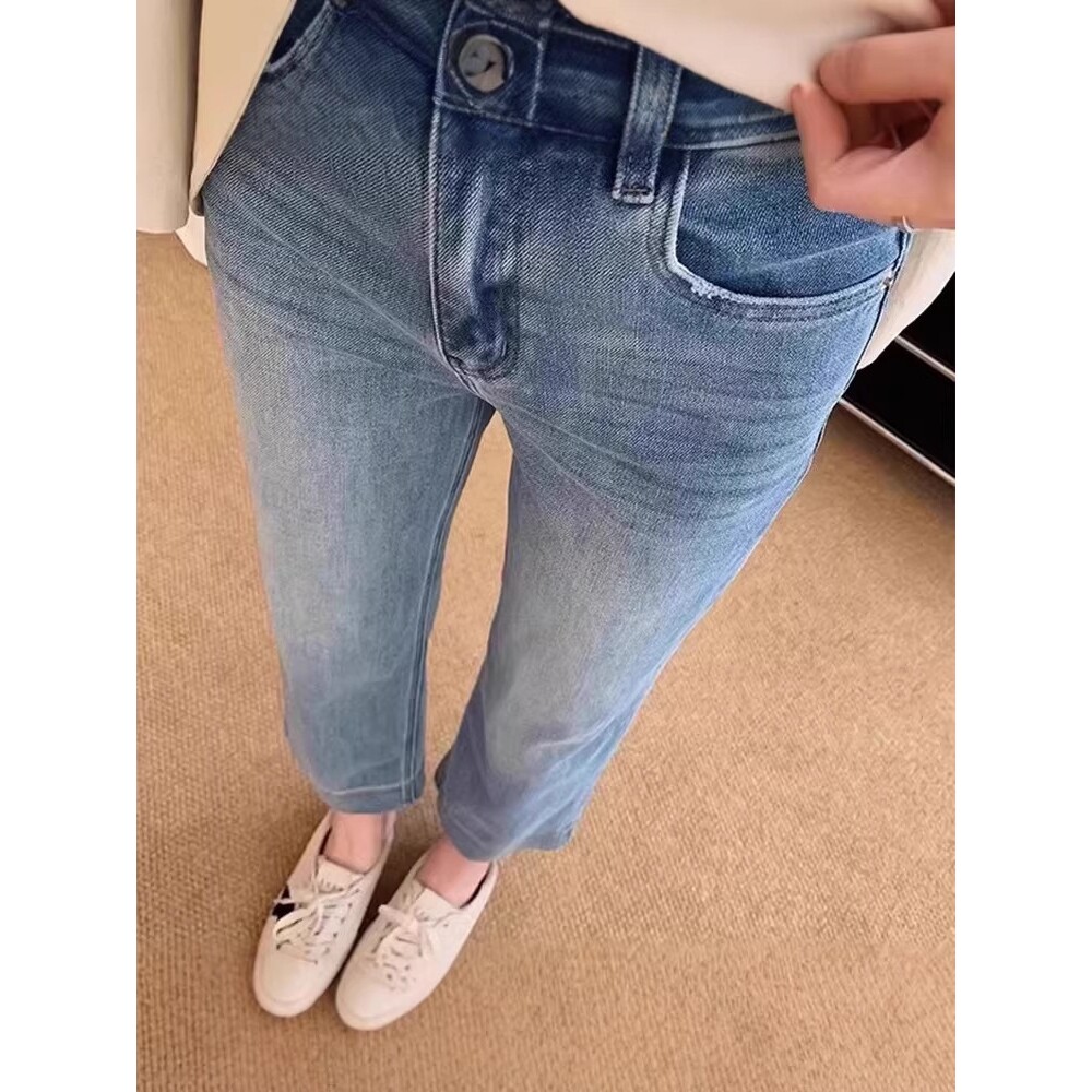 恒源祥美式显瘦显直四面弹直筒牛仔裤子女款春秋季小个子九分阔腿