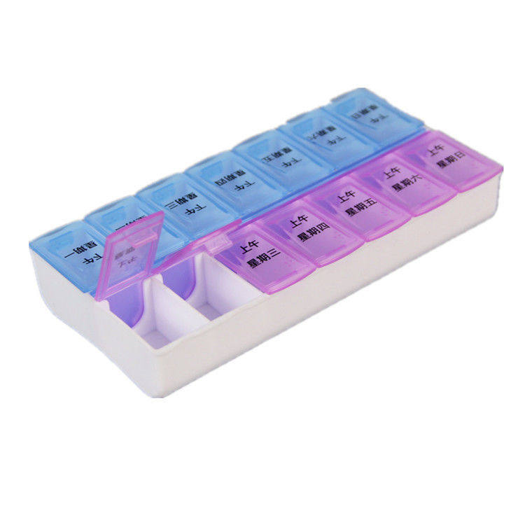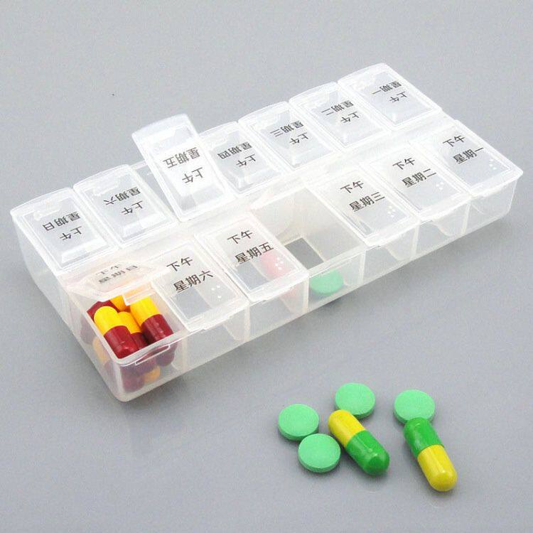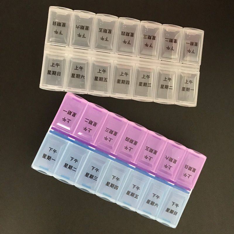 14格药盒子一周七天便携式食品级分装药格子外出一天两次老人吃药