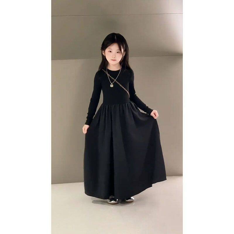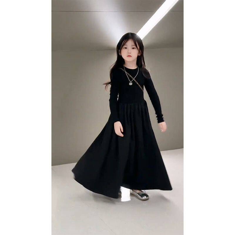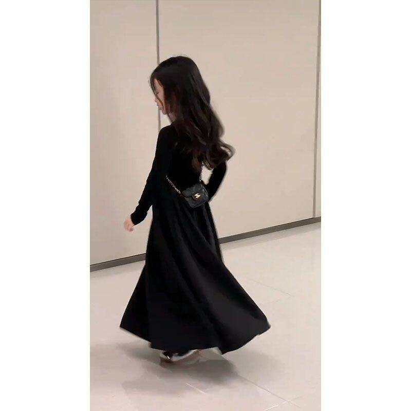 女童高级感长袖连衣裙2026春秋季新款儿童洋气赫本风小黑裙公主裙