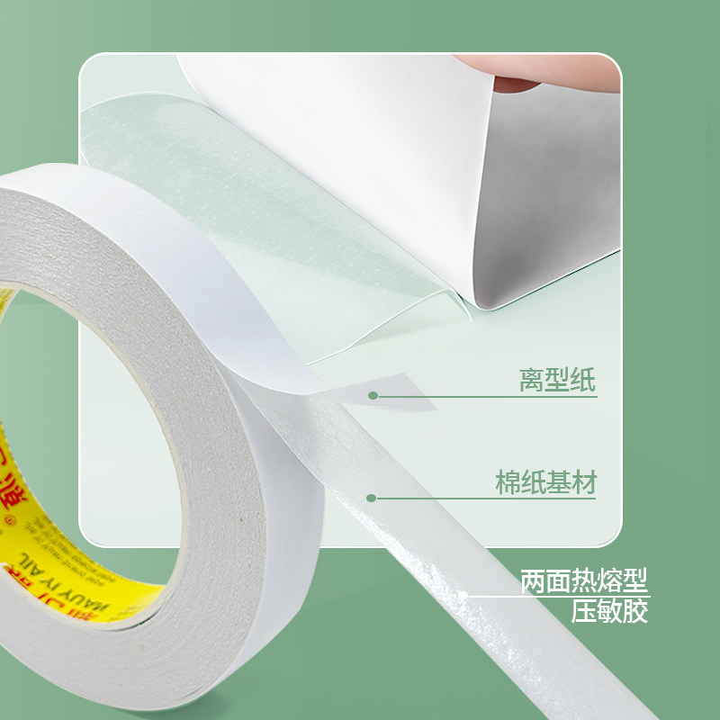 双面胶高粘度超薄强力固定文具办公手工易撕透明白色棉纸两面胶带