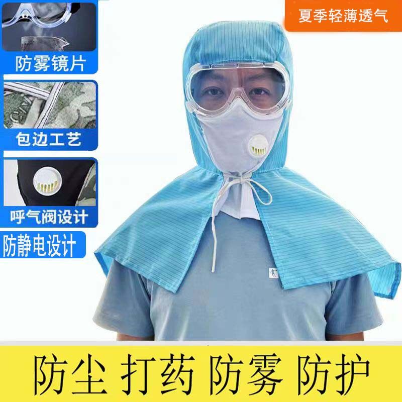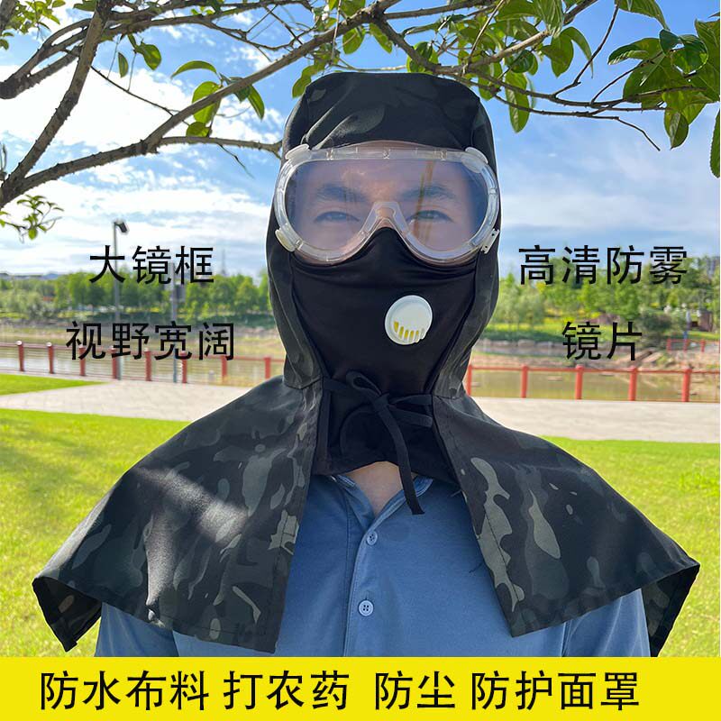 装修工地防尘防晒披肩帽喷漆打农药草全封全脸闭透气防护面罩头套