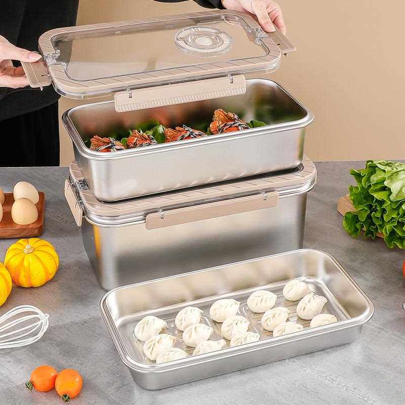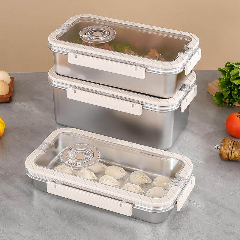304不锈钢食品冰箱专用保鲜盒透明带盖密封防潮水果食品收纳盒