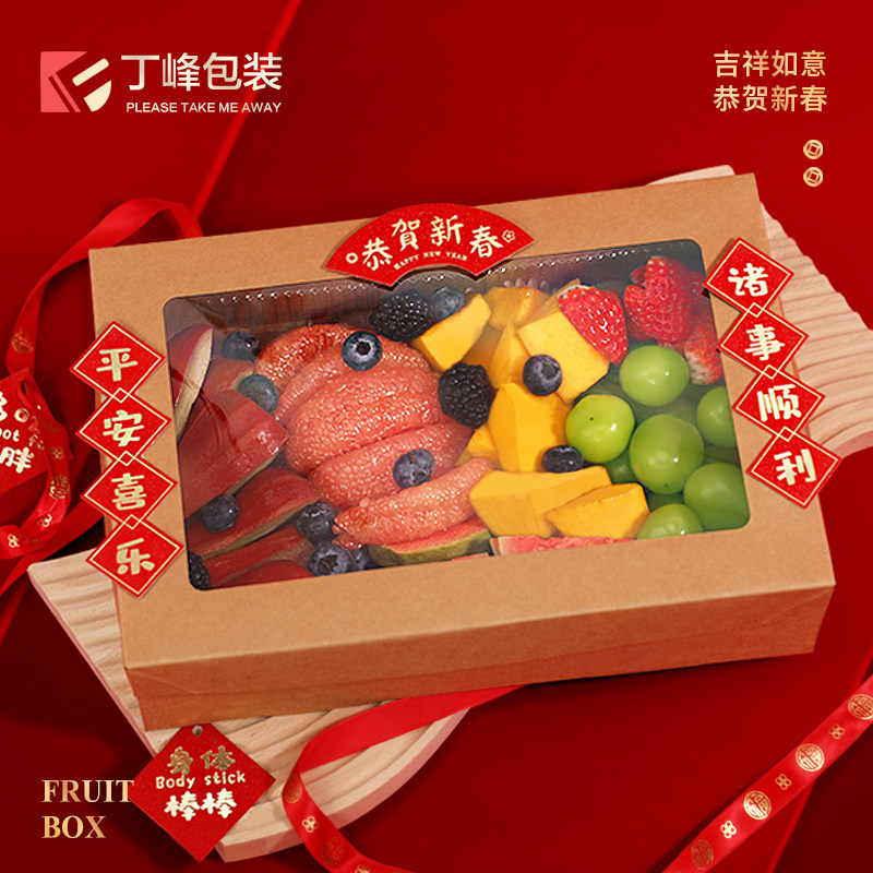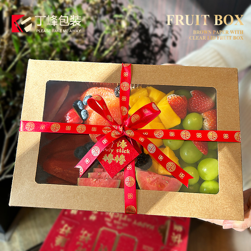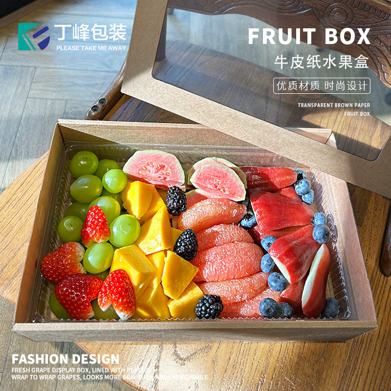 丁峰水果切牛皮纸餐盒三明治水果蛋糕包装盒野餐果切打包防水纸盒