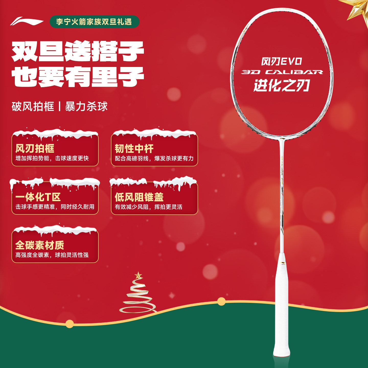 李宁官方正品羽毛球拍全碳素单拍进化之刃风刃EVO双旦限定礼盒装