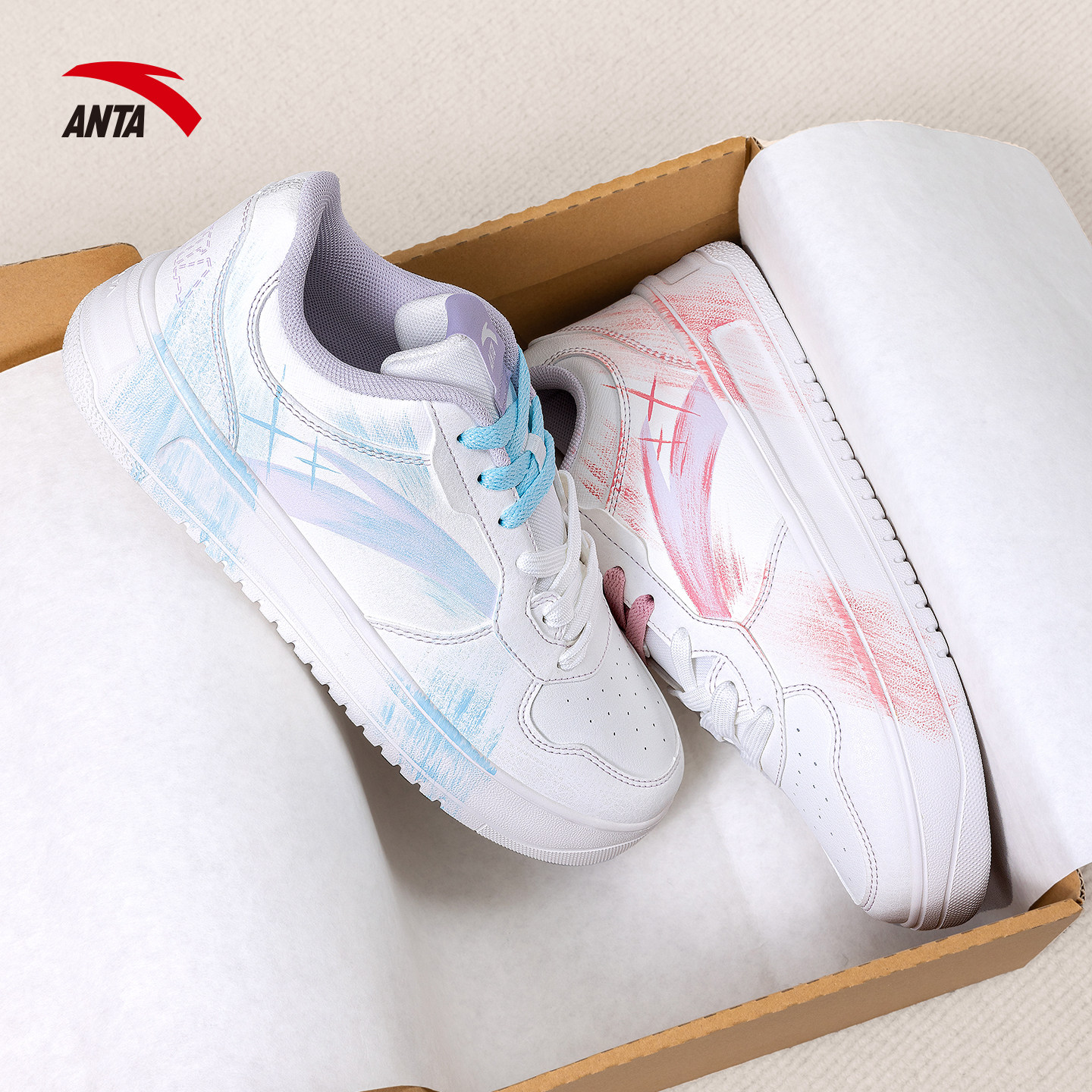 安踏手绘定制板鞋女款厚底小白鞋2026新款低帮休闲鞋涂鸦DIY女鞋