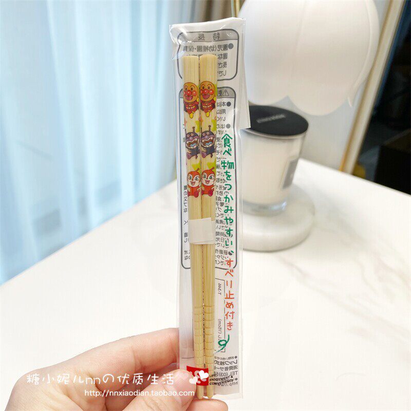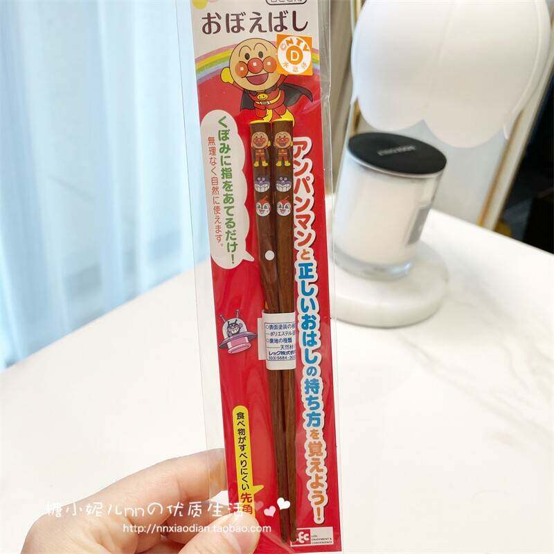 日式日本LEC面包超人卡通儿童防滑筷子训练进阶矫正天然木竹子筷