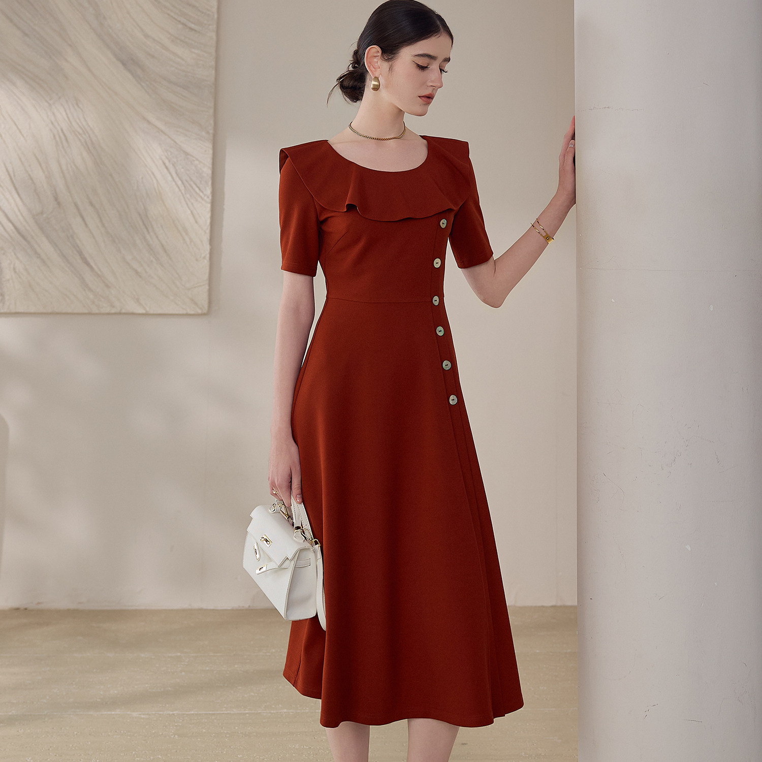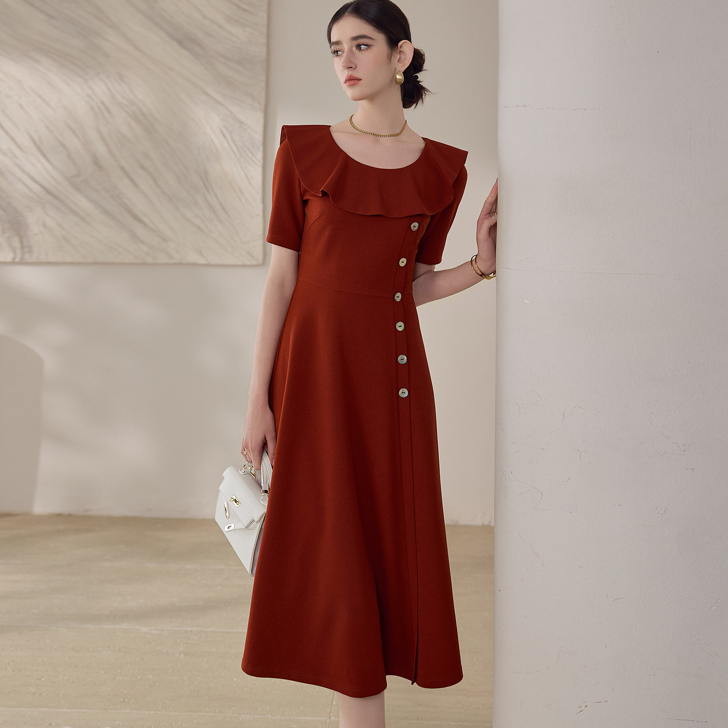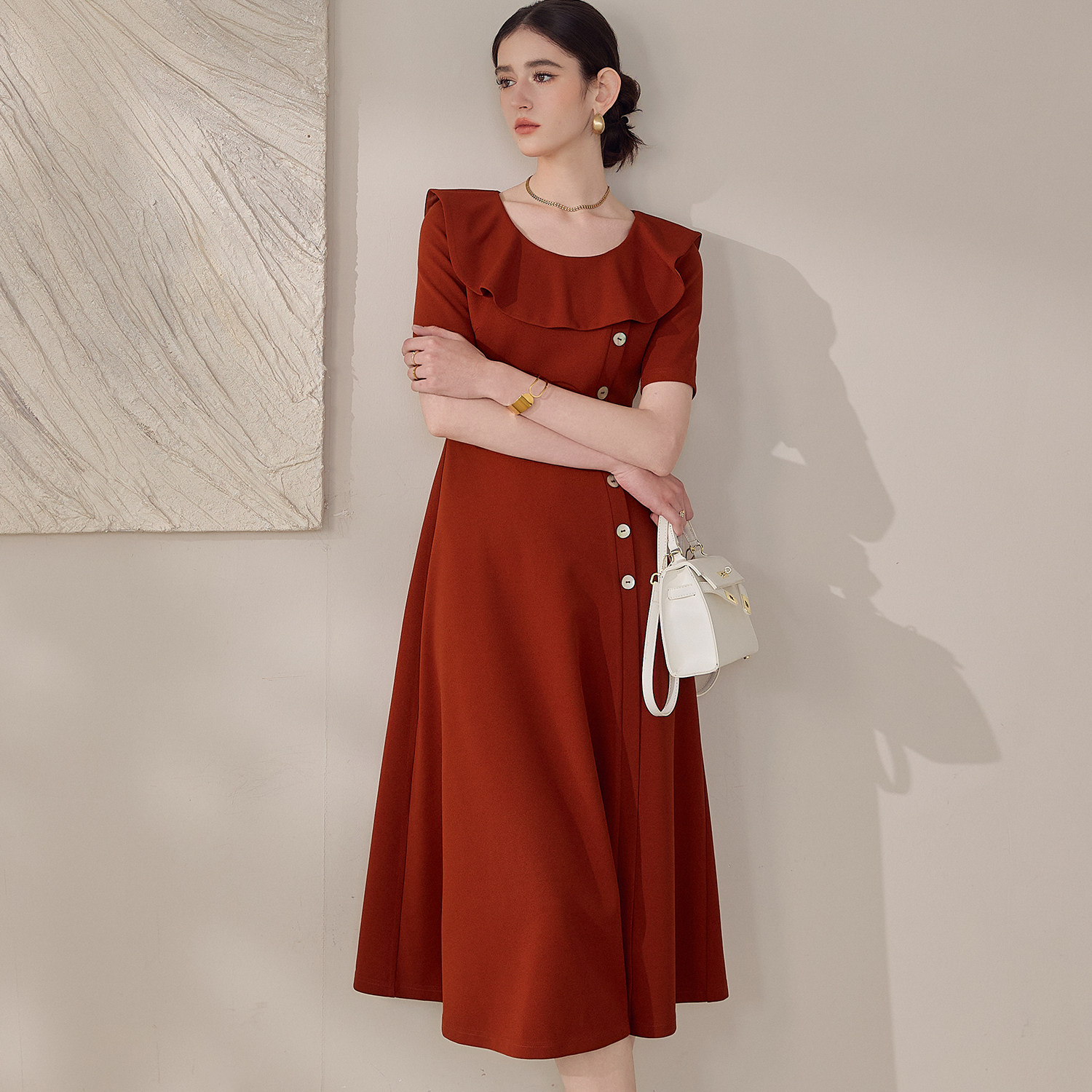 311线报网描述:纽扣装饰 荷叶边设计 弹性针织面料