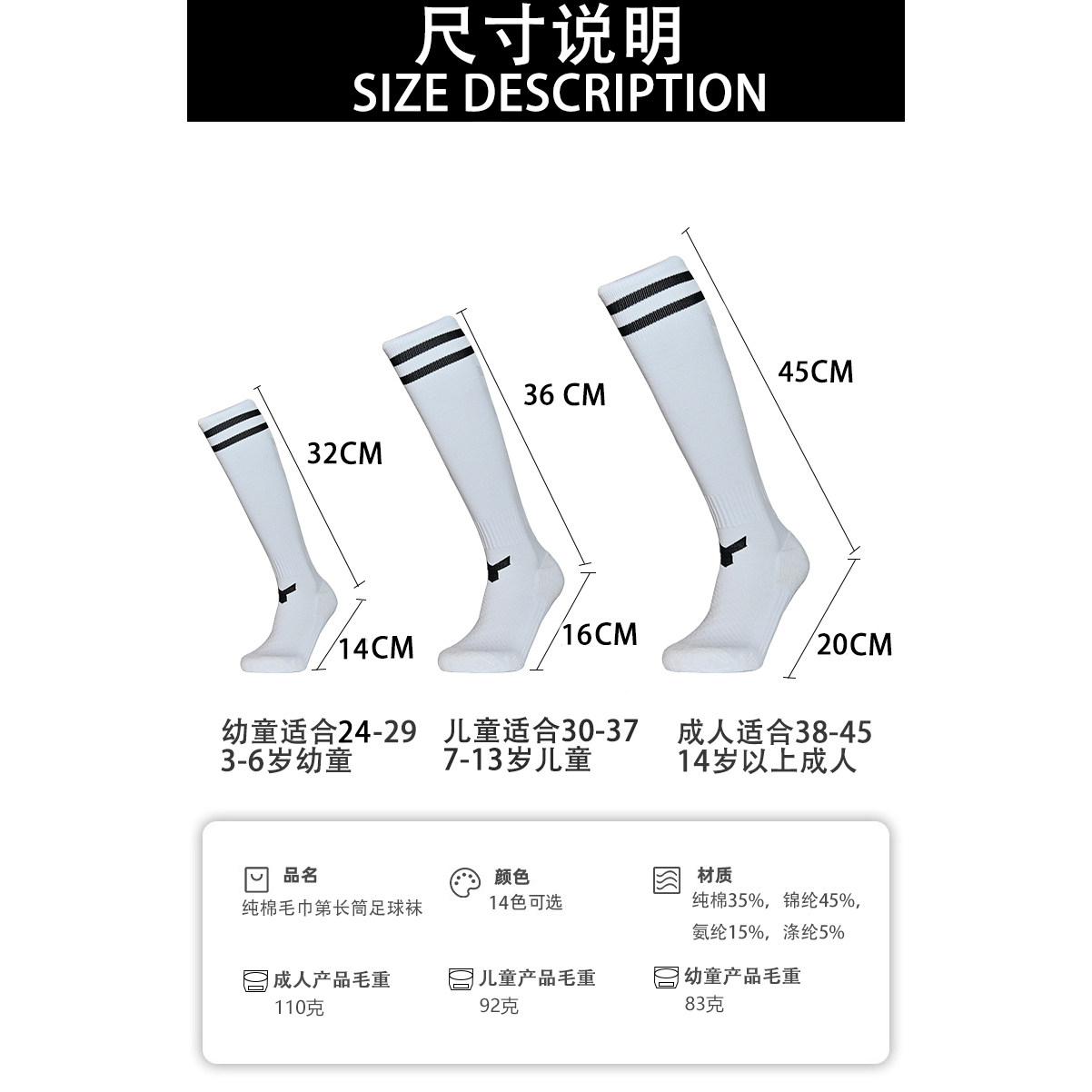 棉质毛巾底足球袜成人青少年长筒足球运动袜子长袜球袜护腿板袜套