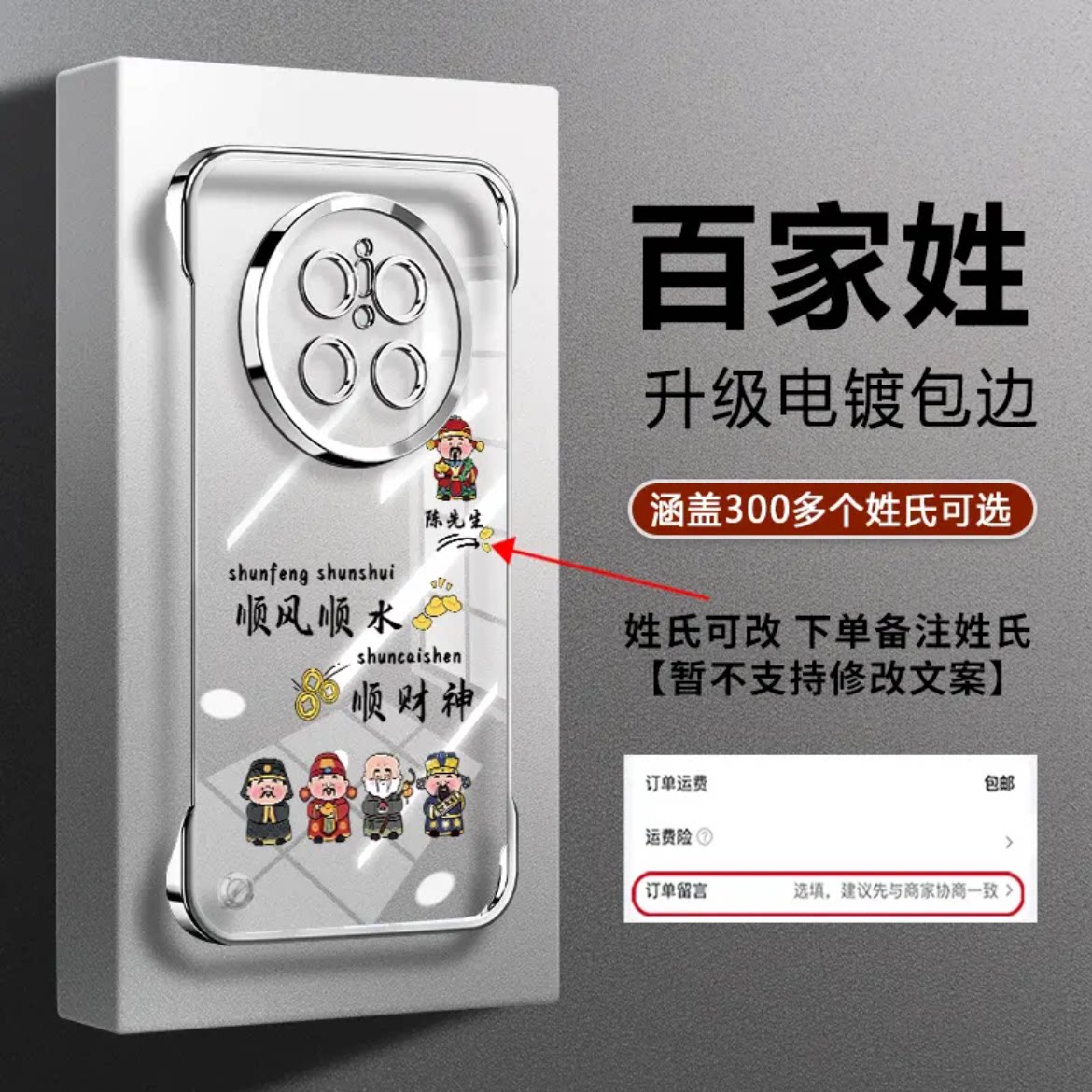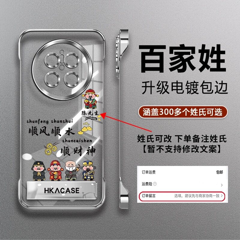 顺财神百家姓电镀无边框适用华为mate70手机壳新款简约mate50外壳防摔透明超薄mate70Pro姓氏定制手机套男款