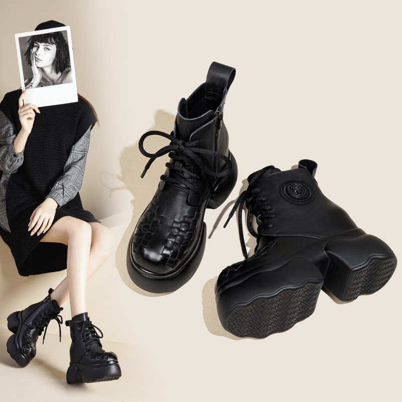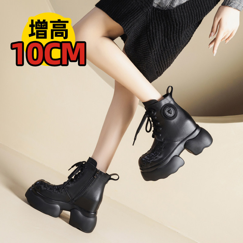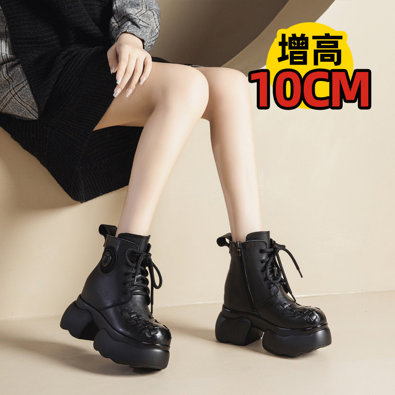 10cm厘米厚底松糕短靴真皮女鞋高跟单鞋百搭头层牛皮内增高马丁靴