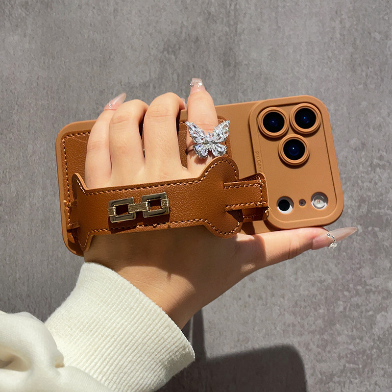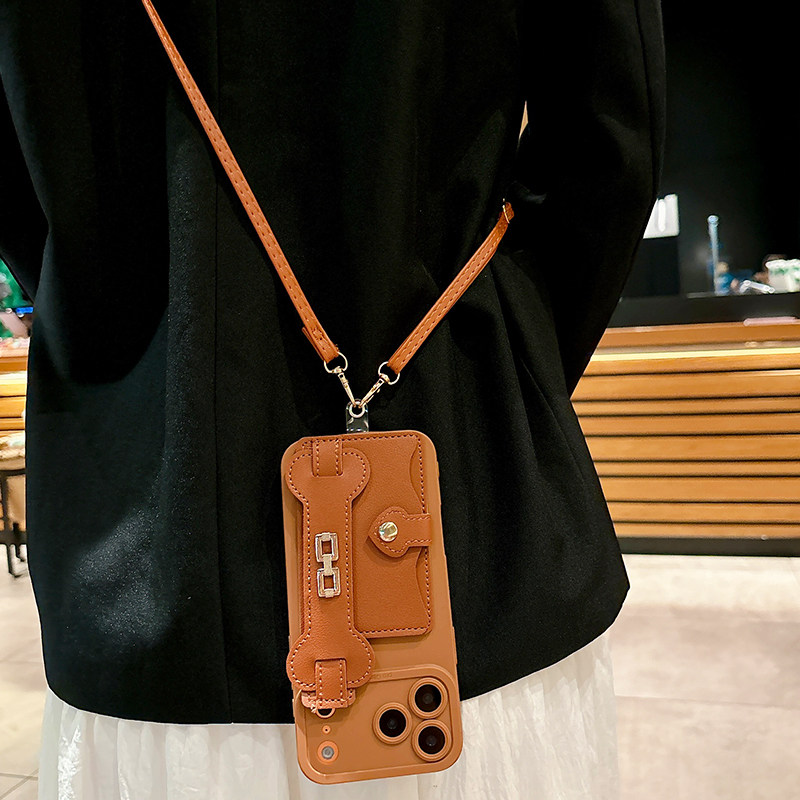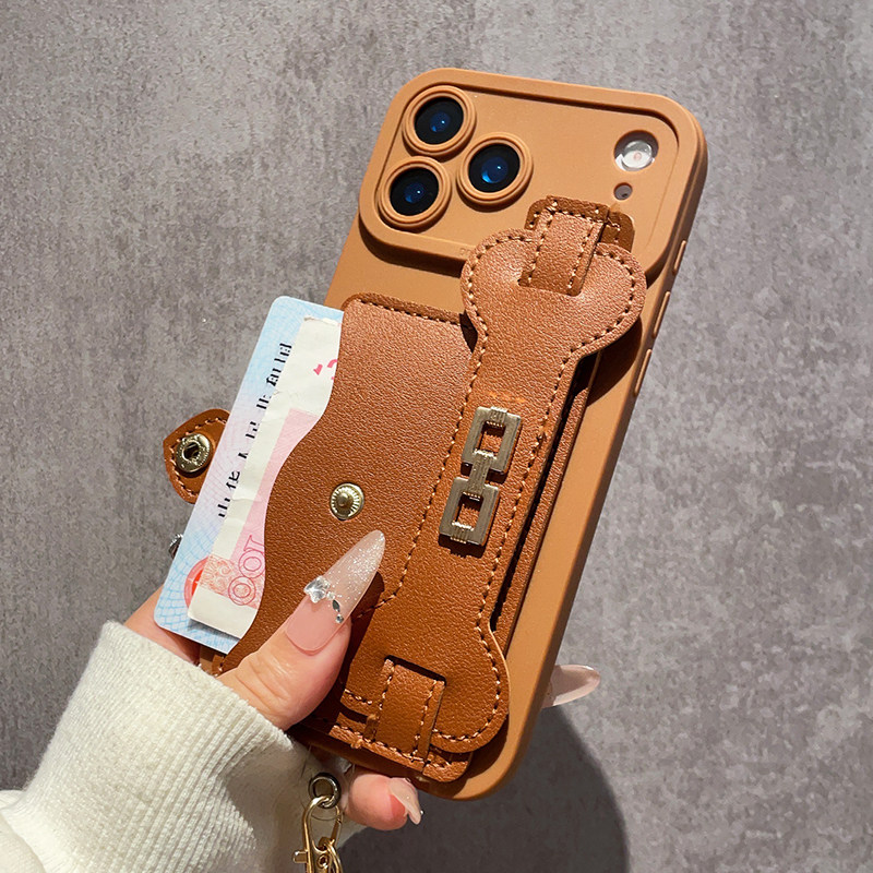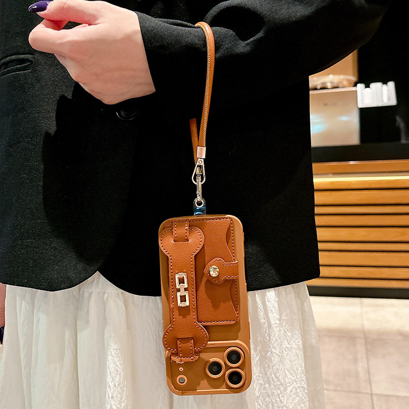 美拉德棕色腕带零钱卡包适用苹果17Promax手机壳iPhone16Pro斜跨IP15背带14高级感13软壳全包12防摔11女款Air