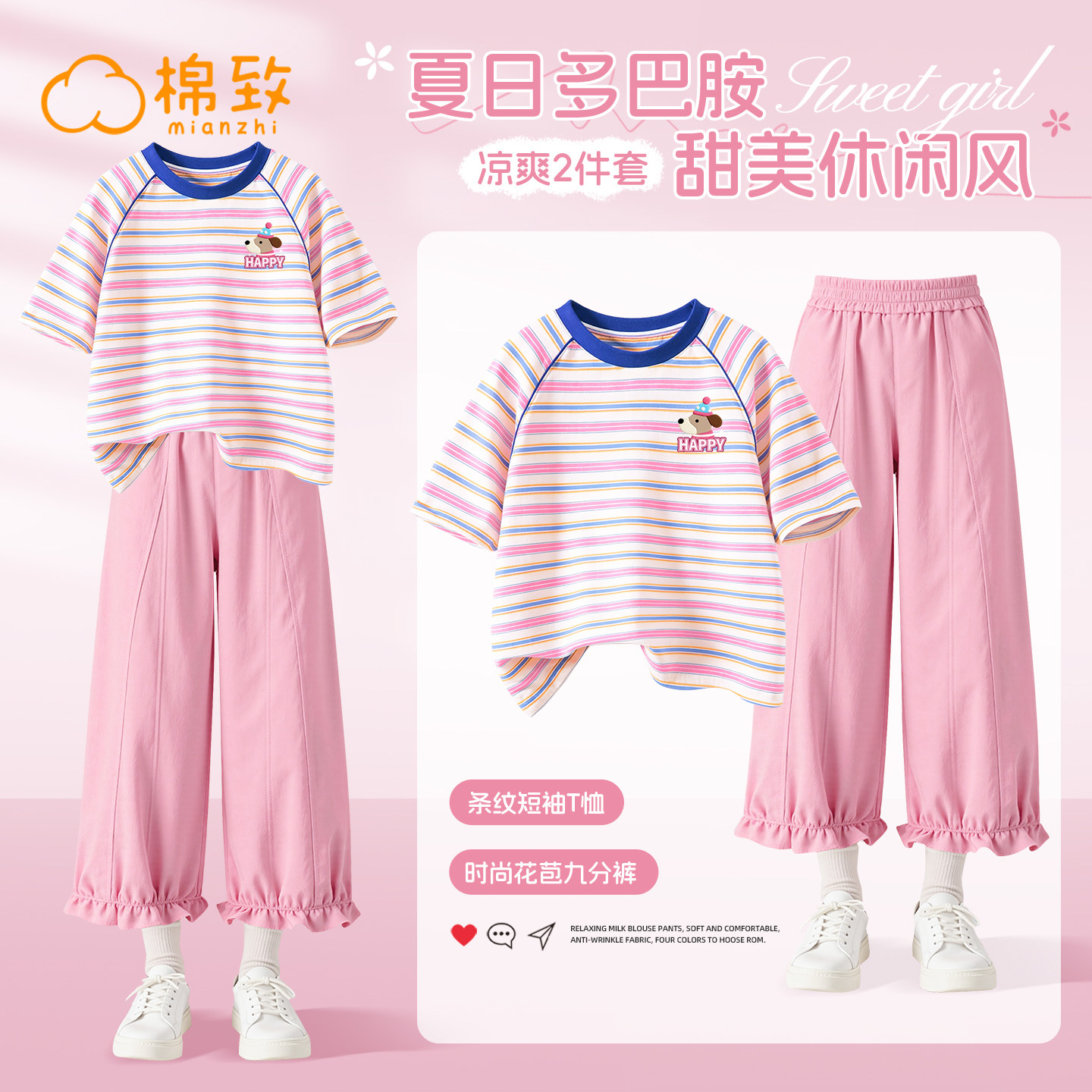 棉致女童套装夏季2026新款时尚洋气女装女孩短袖裤子儿童夏装衣服