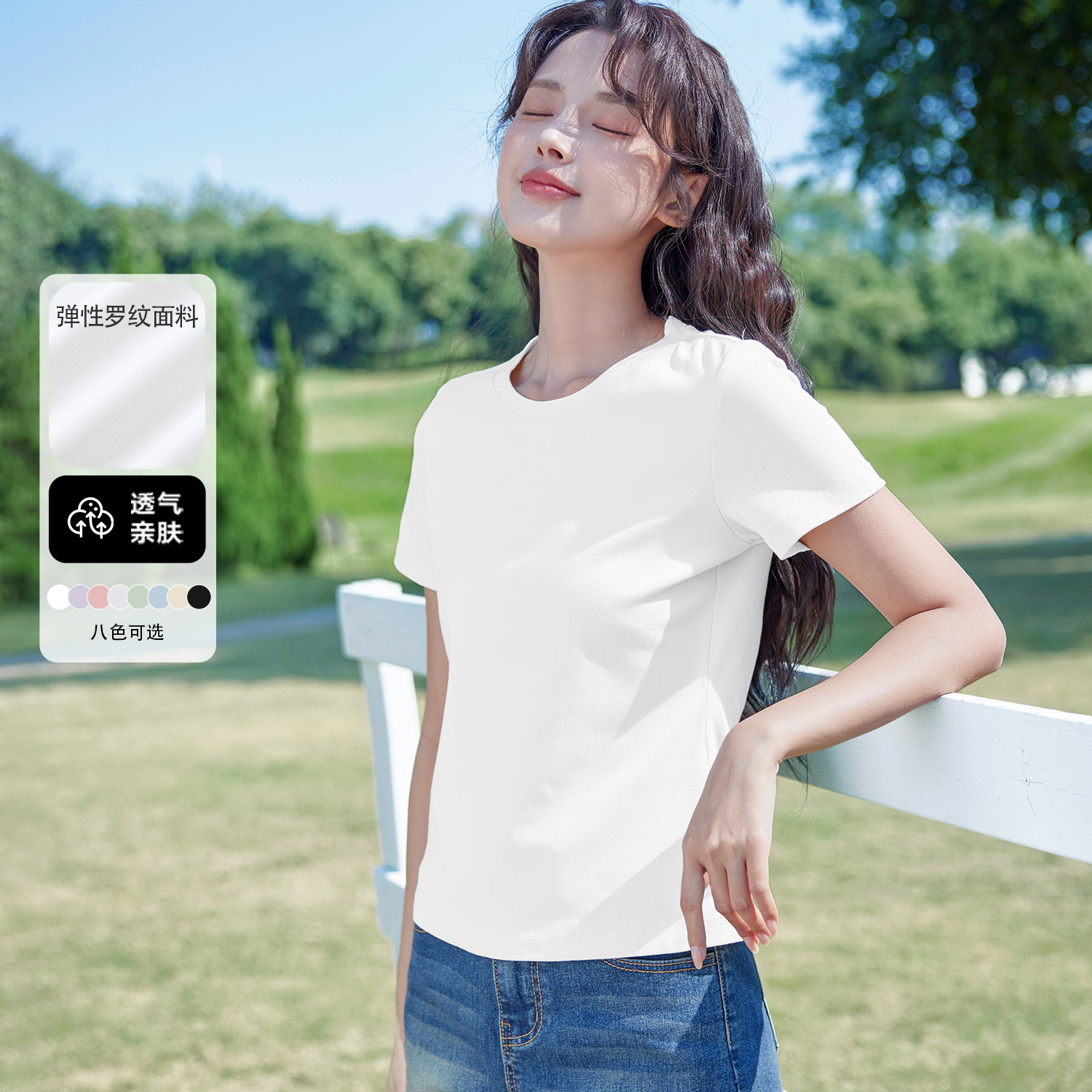 班尼路黑色正肩短袖t恤女款2026夏季新款修身小个子打底短款上衣M