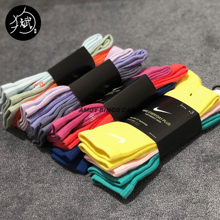 Nike耐克正品男女低中高帮马卡龙色彩虹纯棉运动健身瑜伽长筒袜子