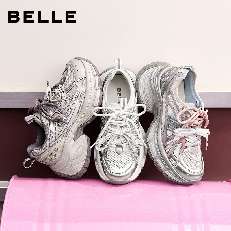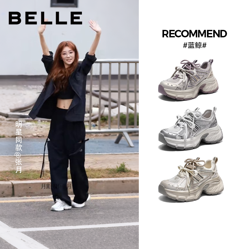 张凌赫张月同款百丽蓝鲸网面老爹鞋男女款厚底商场休闲鞋E8X1DA预