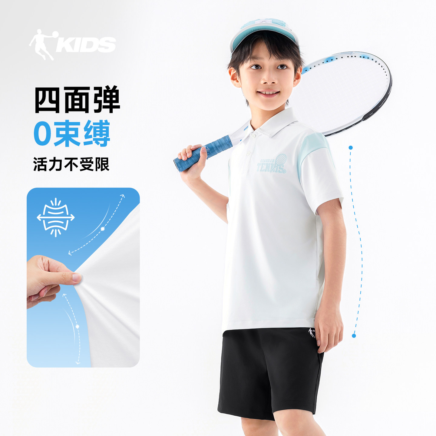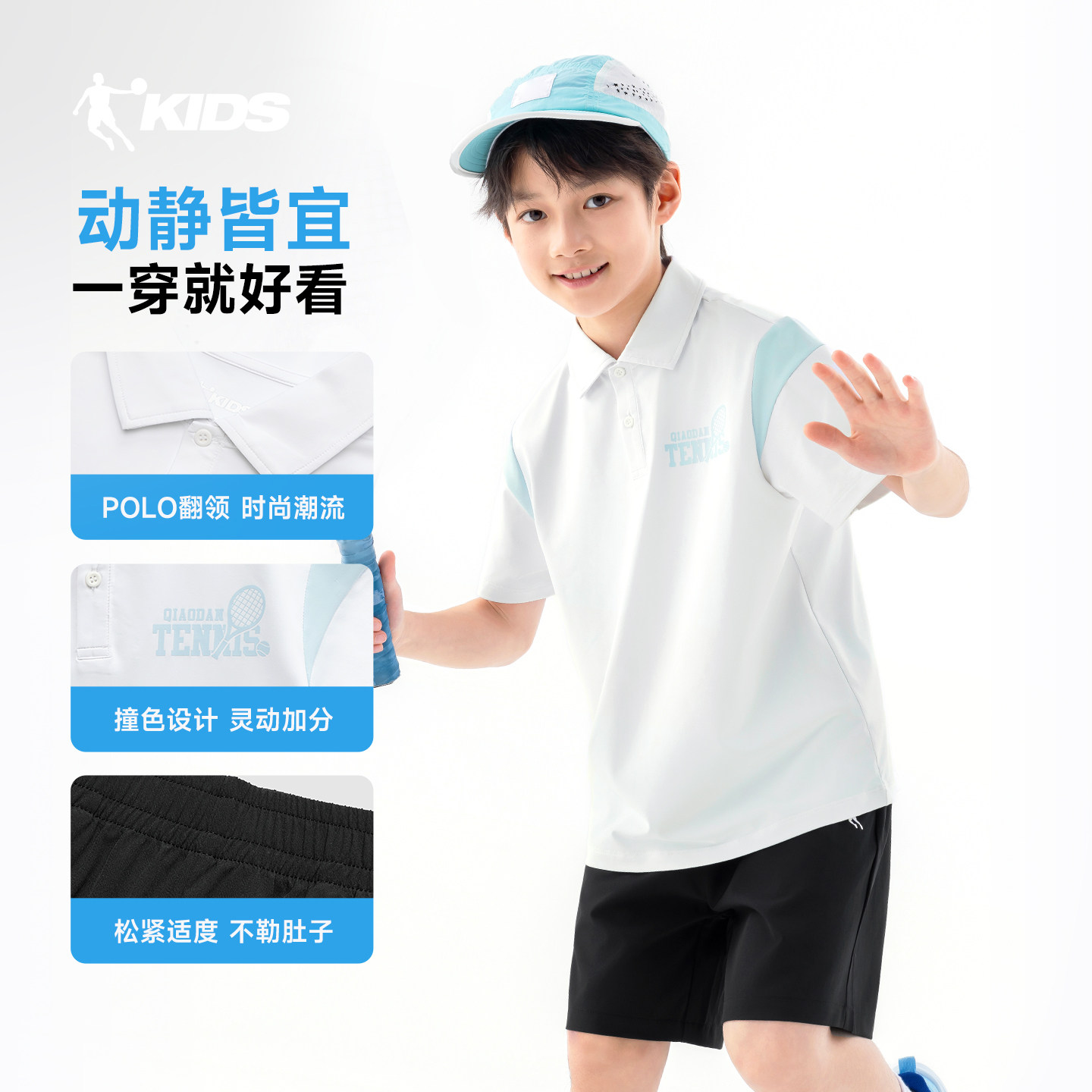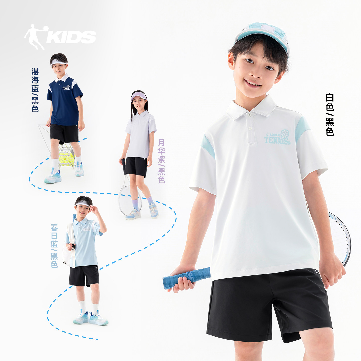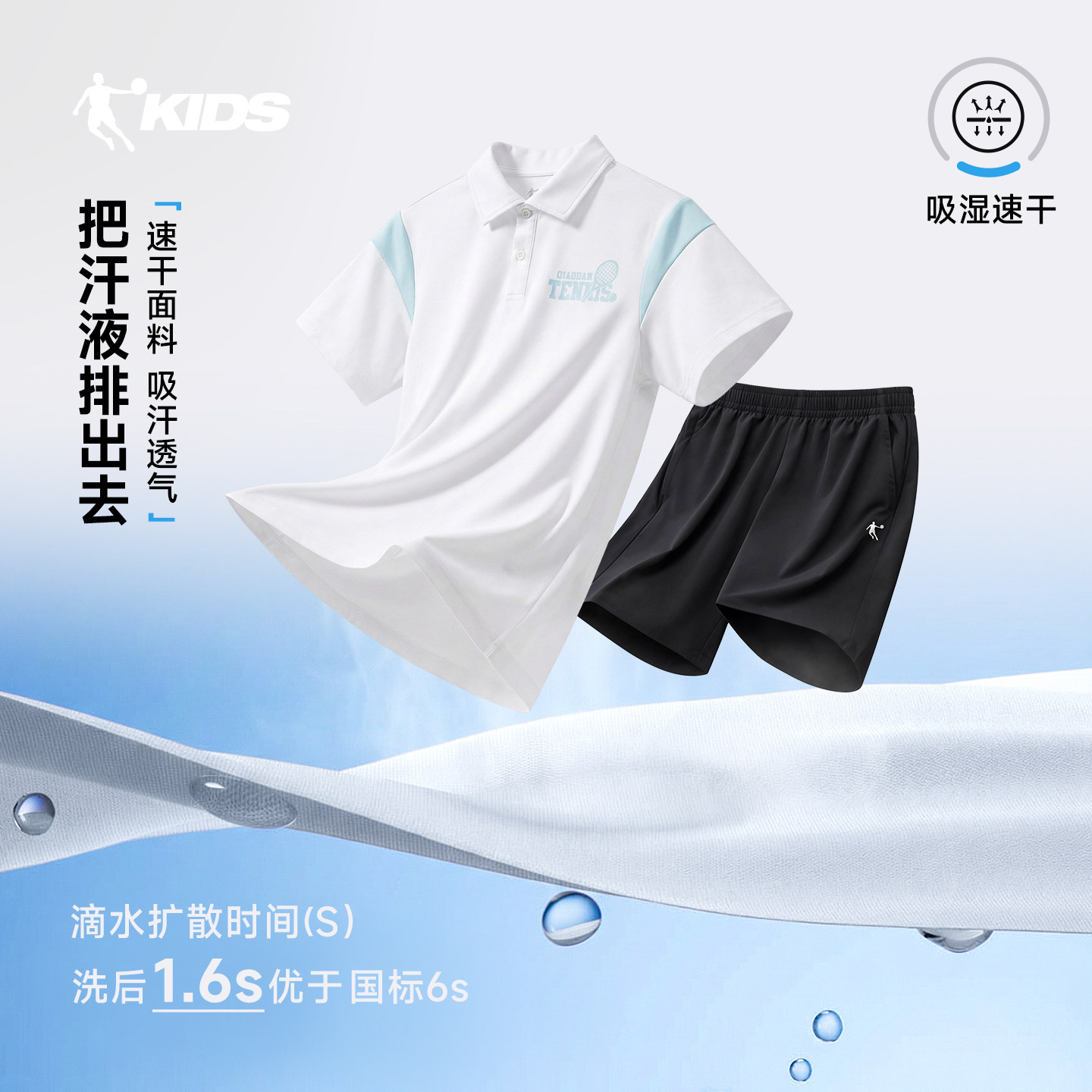 乔丹童装男童polo衫运动套装夏季中大童速干透气短袖短裤套装女童