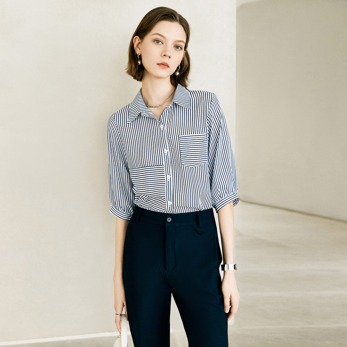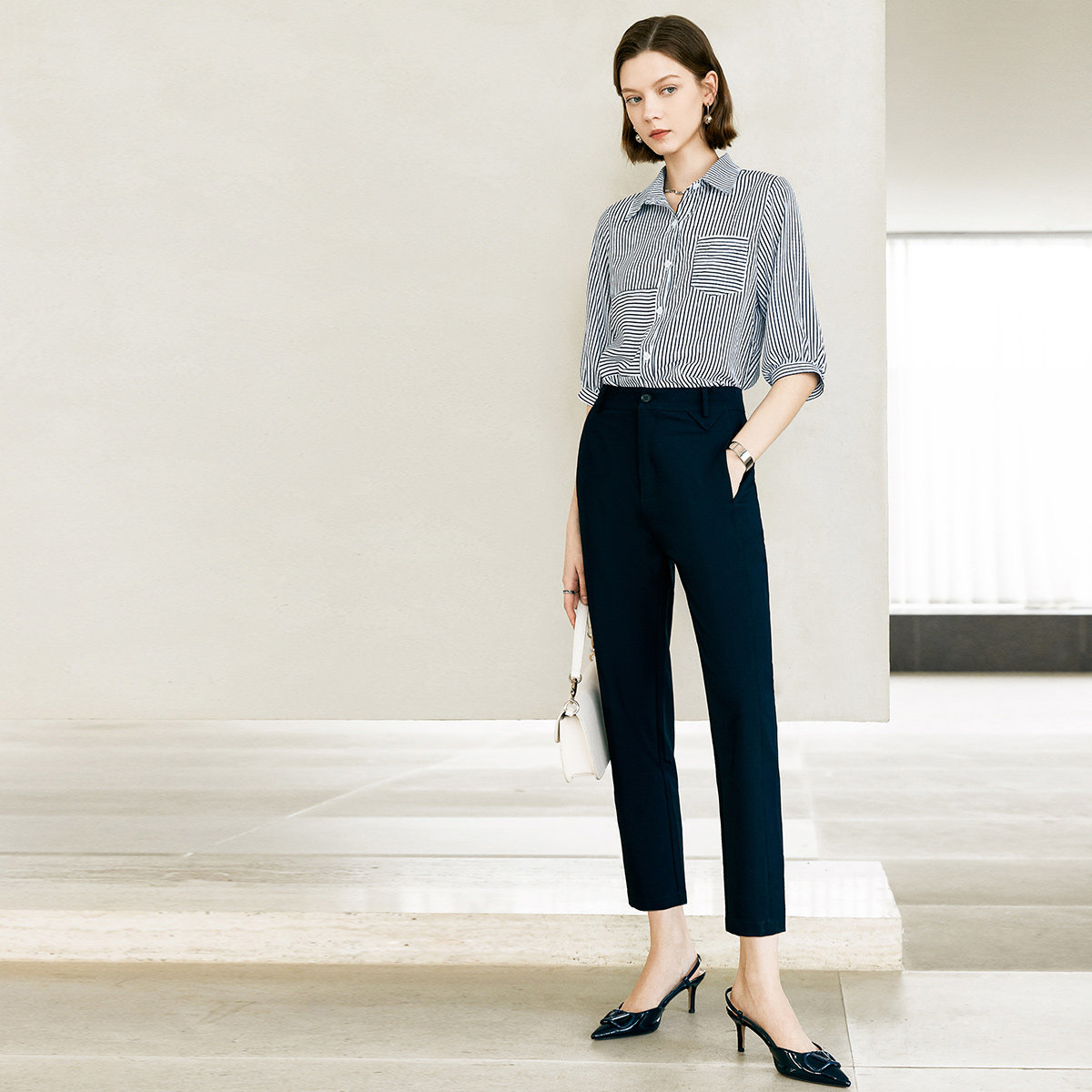 颜域休闲通勤简约套装2026新款女装夏装搭配一整套衬衫裤子两件套