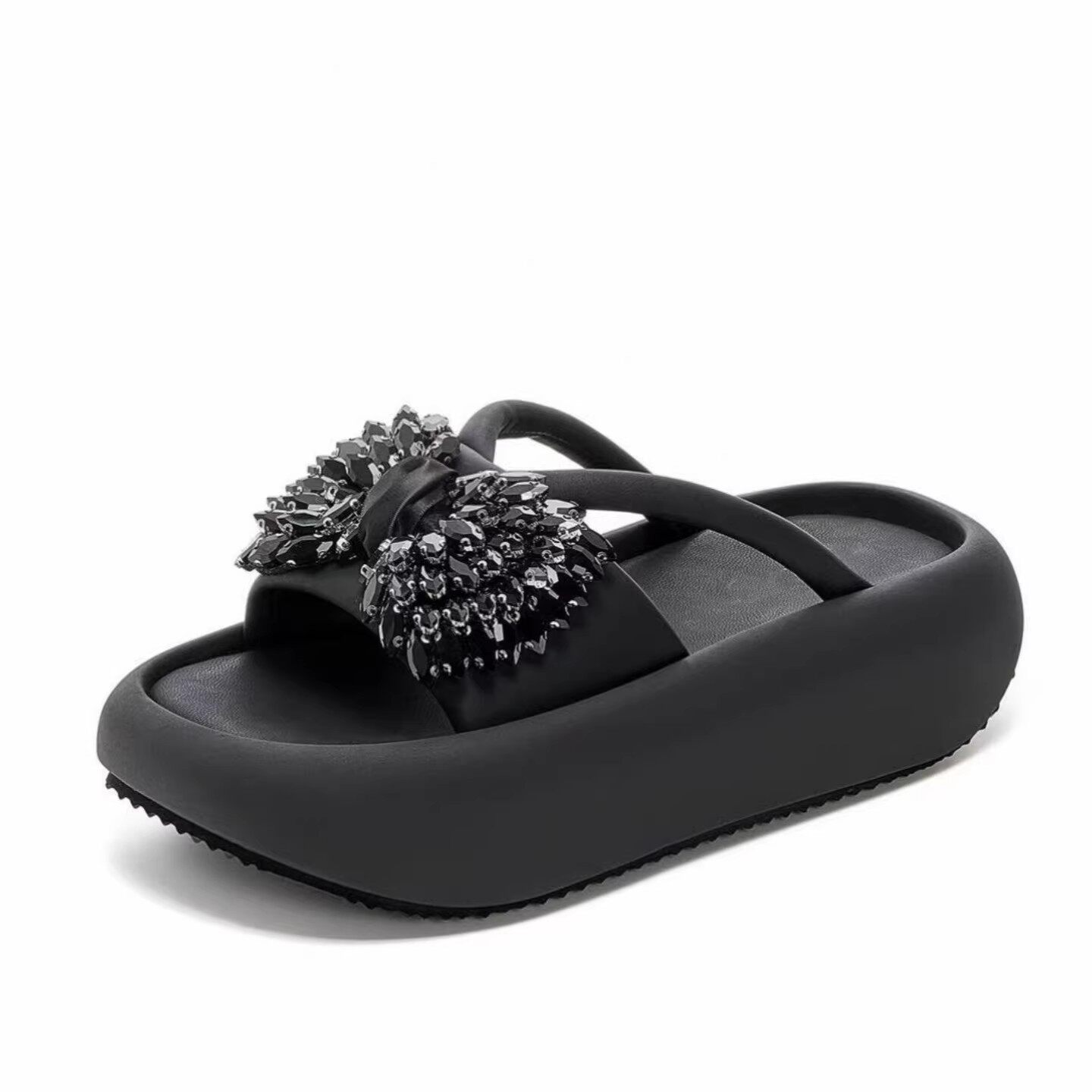 绝美厚底凉拖鞋女外穿2026新款夏高级感水钻蝴蝶结配裙子增高拖鞋