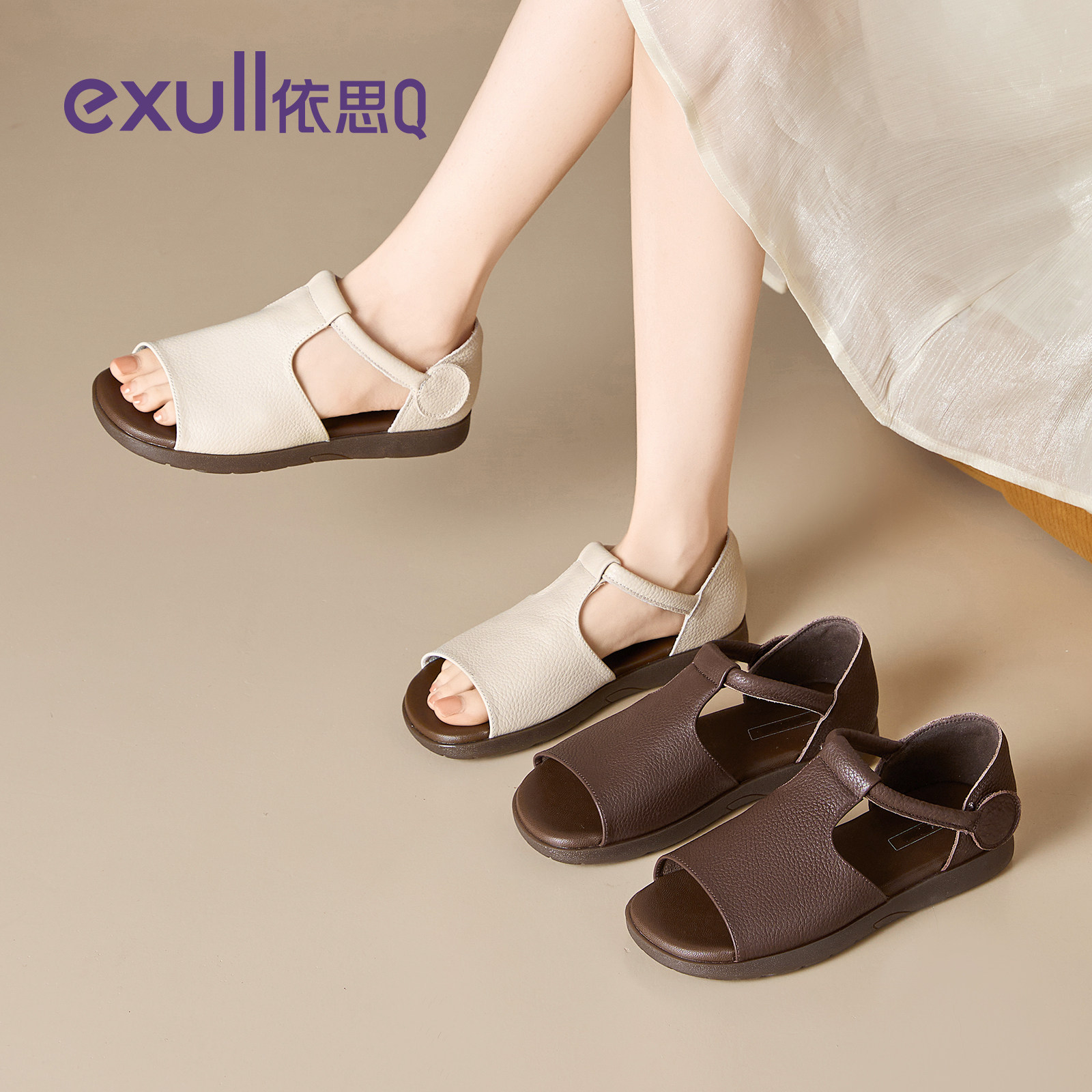 依思q厚底凉鞋女2026新款春季外穿时尚休闲沙滩凉拖鞋魔术贴鞋子