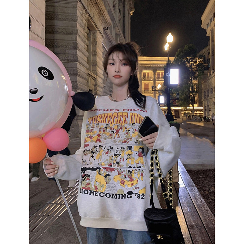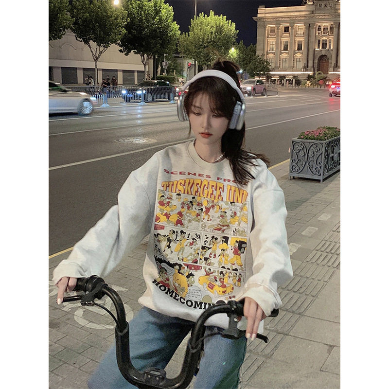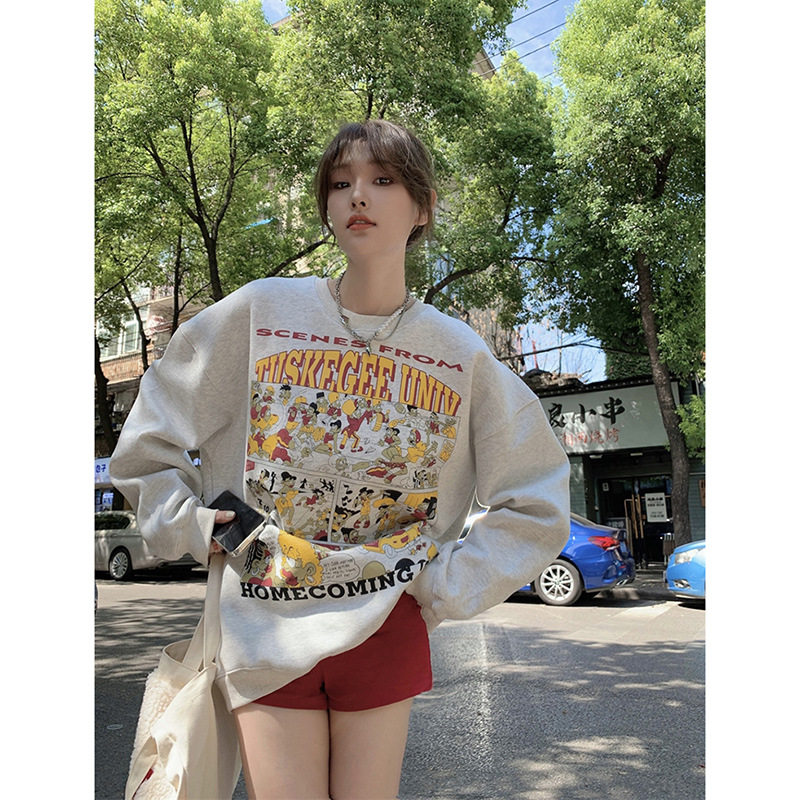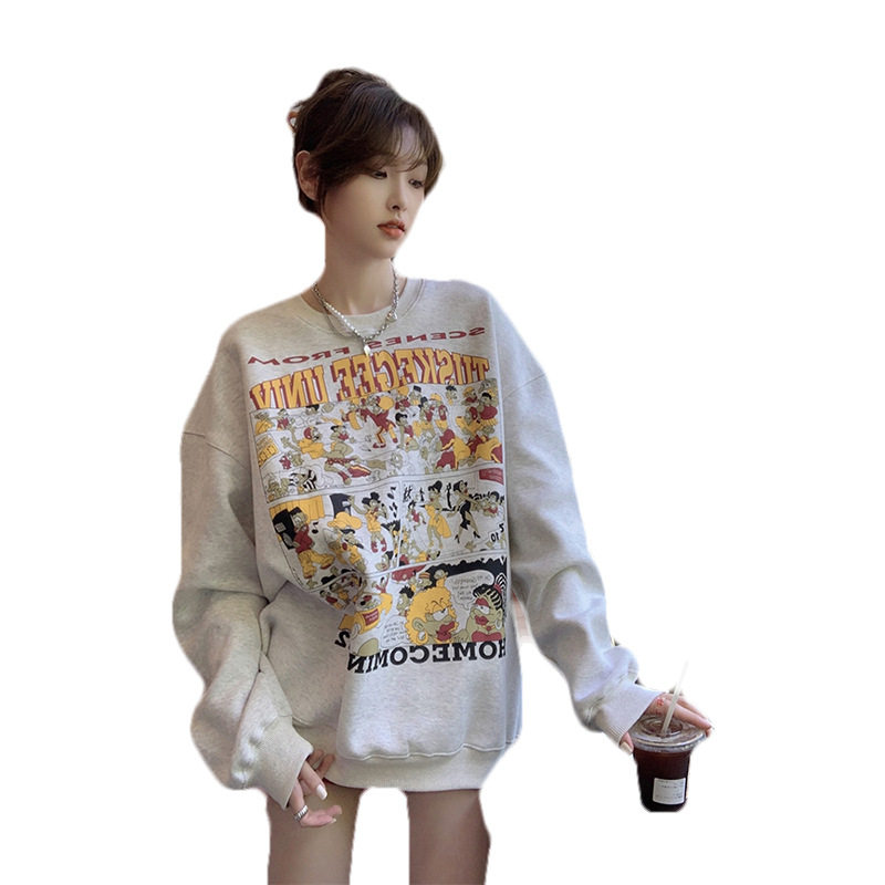灰色美式卫衣女款秋冬加绒加厚2026新款爆款宽松中长款遮屁股外套