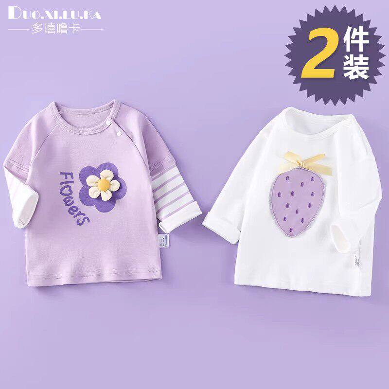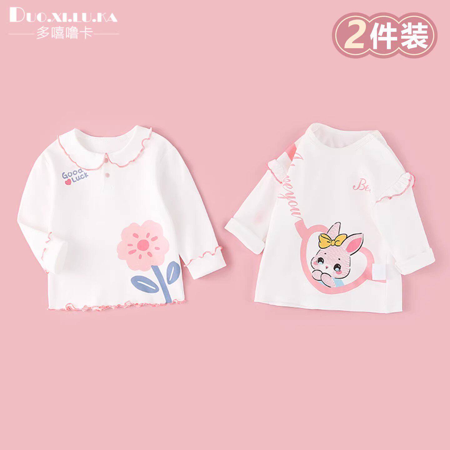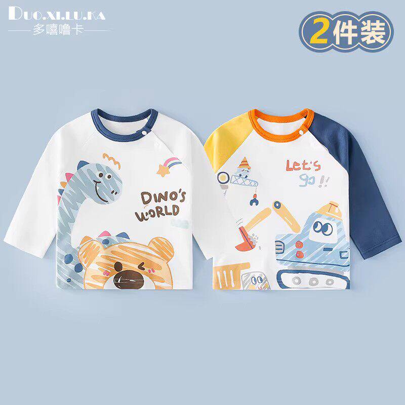 两件装 男女童A类纯棉长袖t恤动物卡通印花上衣春装2026新款潮