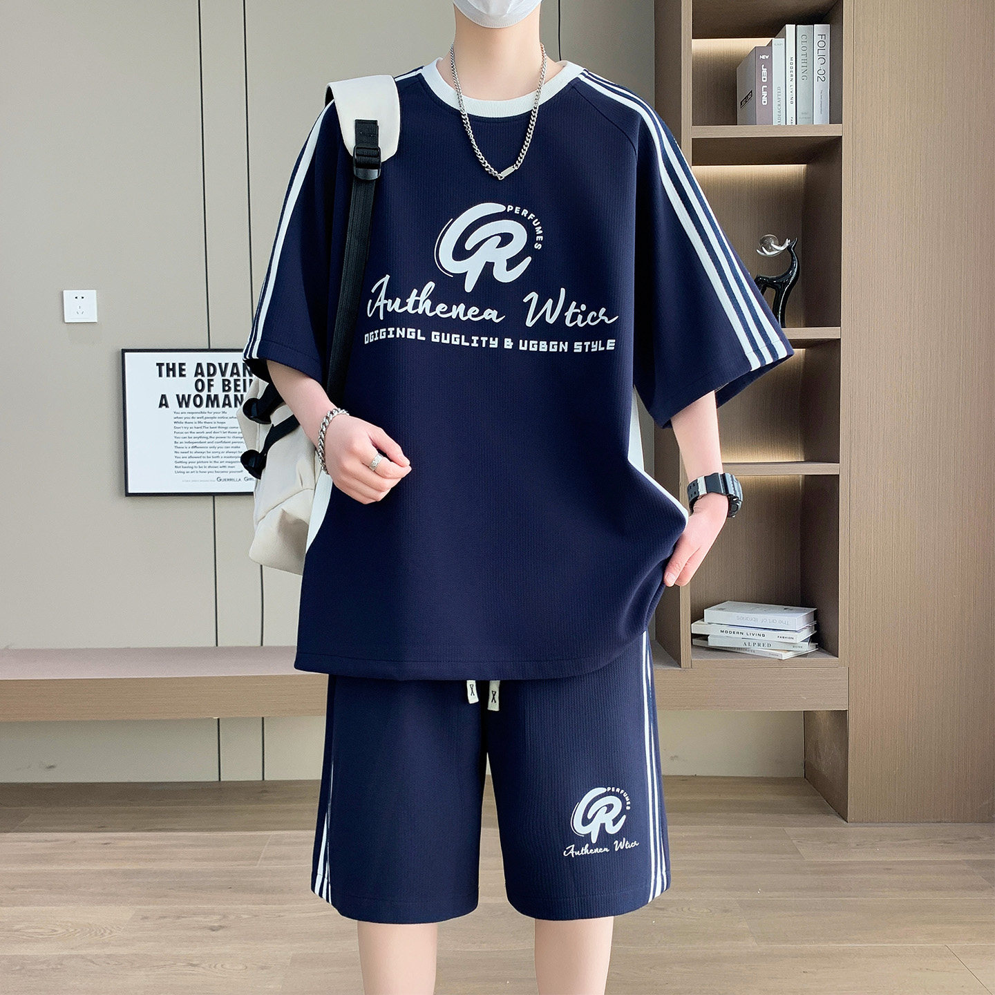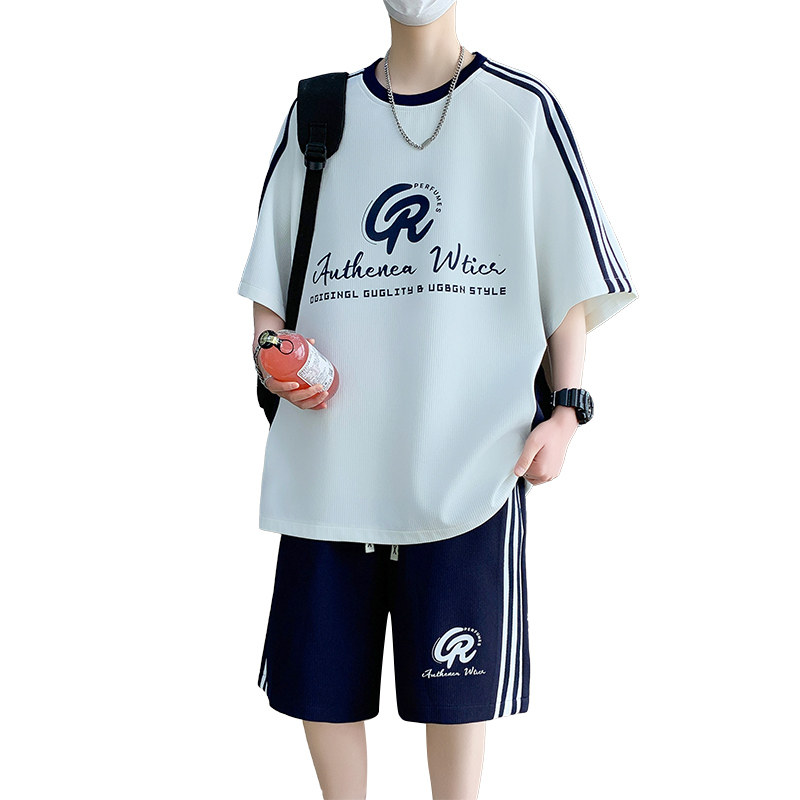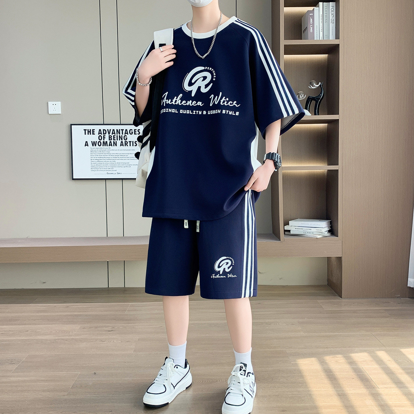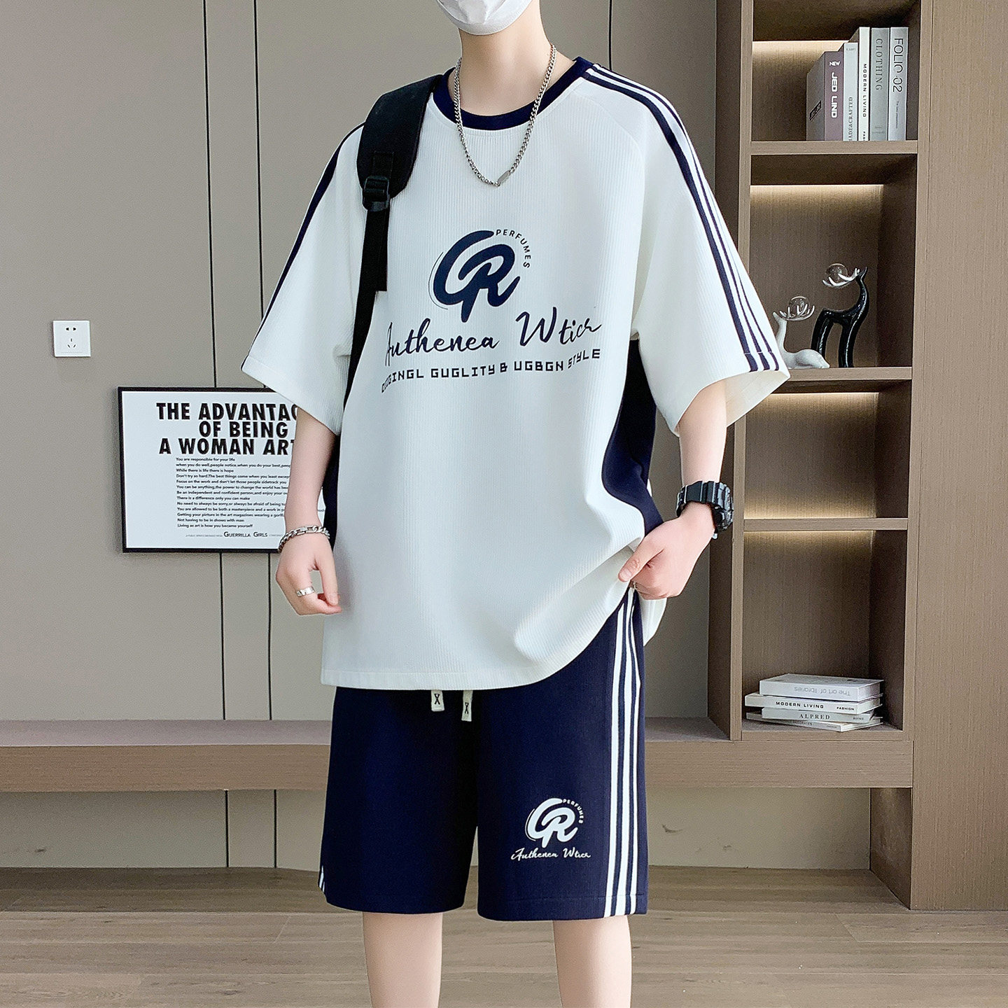 青少年夏季套装男孩衣服2025新款初高中学生冰丝短袖t恤大童男装