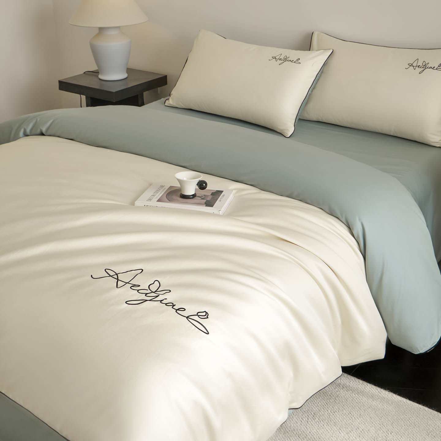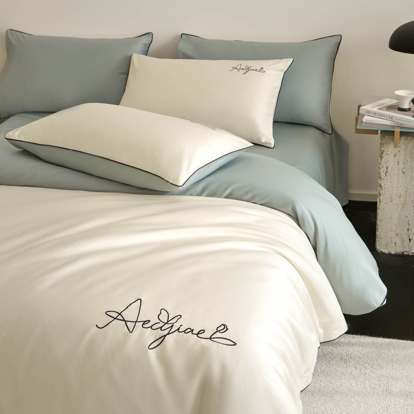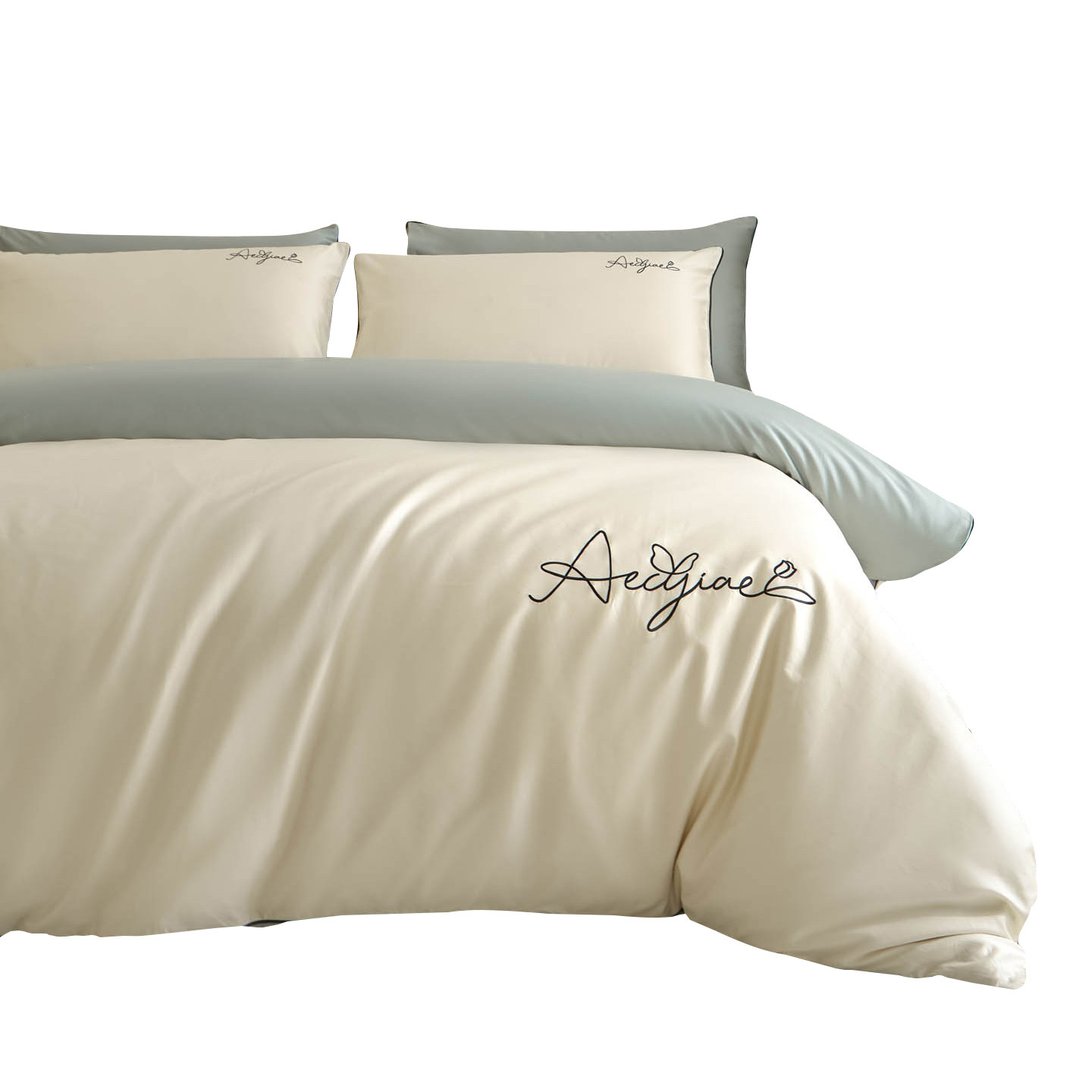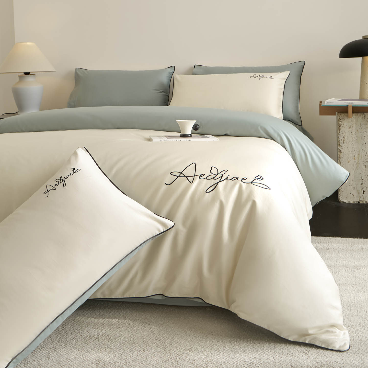 轻奢纯棉床上四件套2026新款全棉纯色被套床单床笠三件套刺绣床品