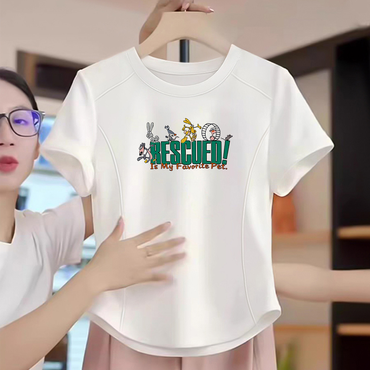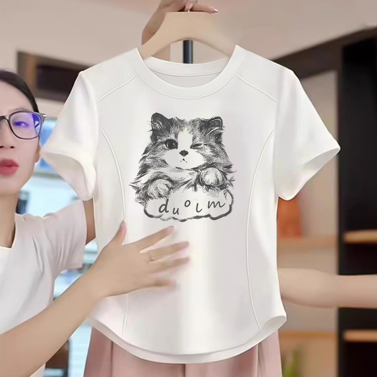 女童短袖t恤纯棉夏季2026新款中大儿童夏装正肩圆领鱼骨上衣短款