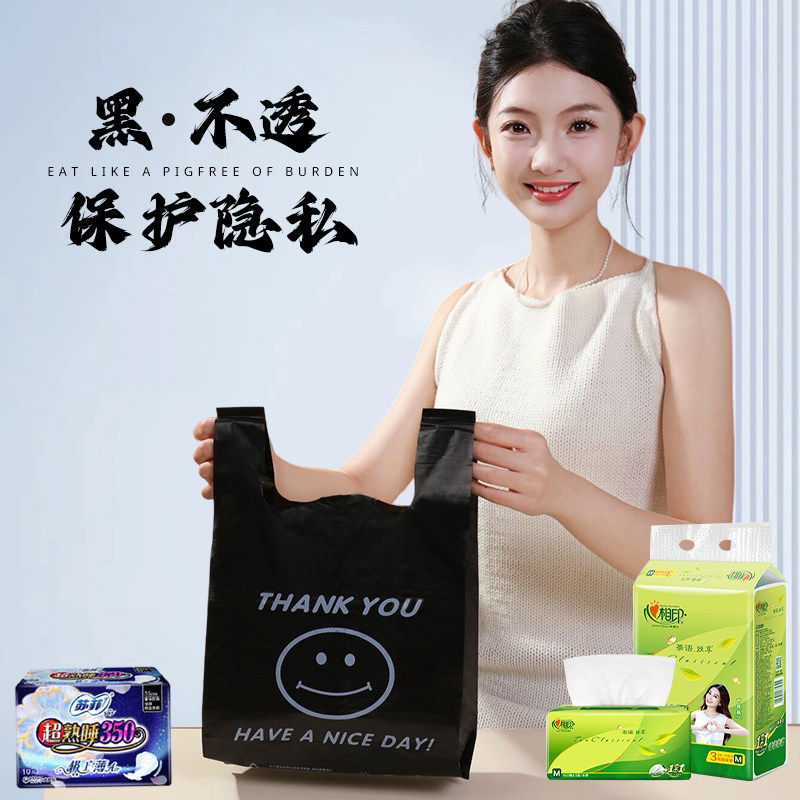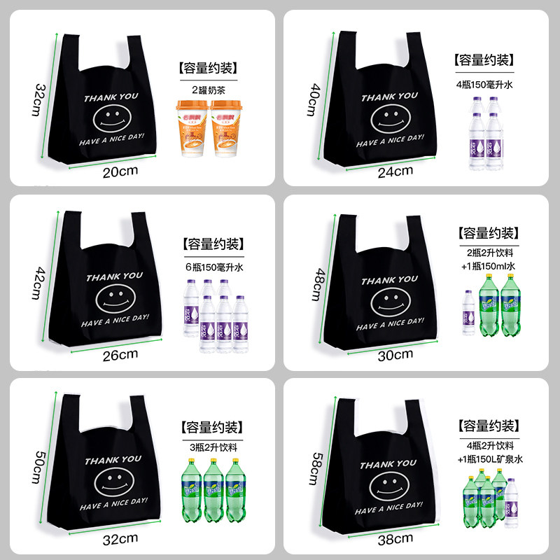 加厚黑色笑脸塑料袋厂家批发袋子商用方便袋胶袋背心袋超市购物袋