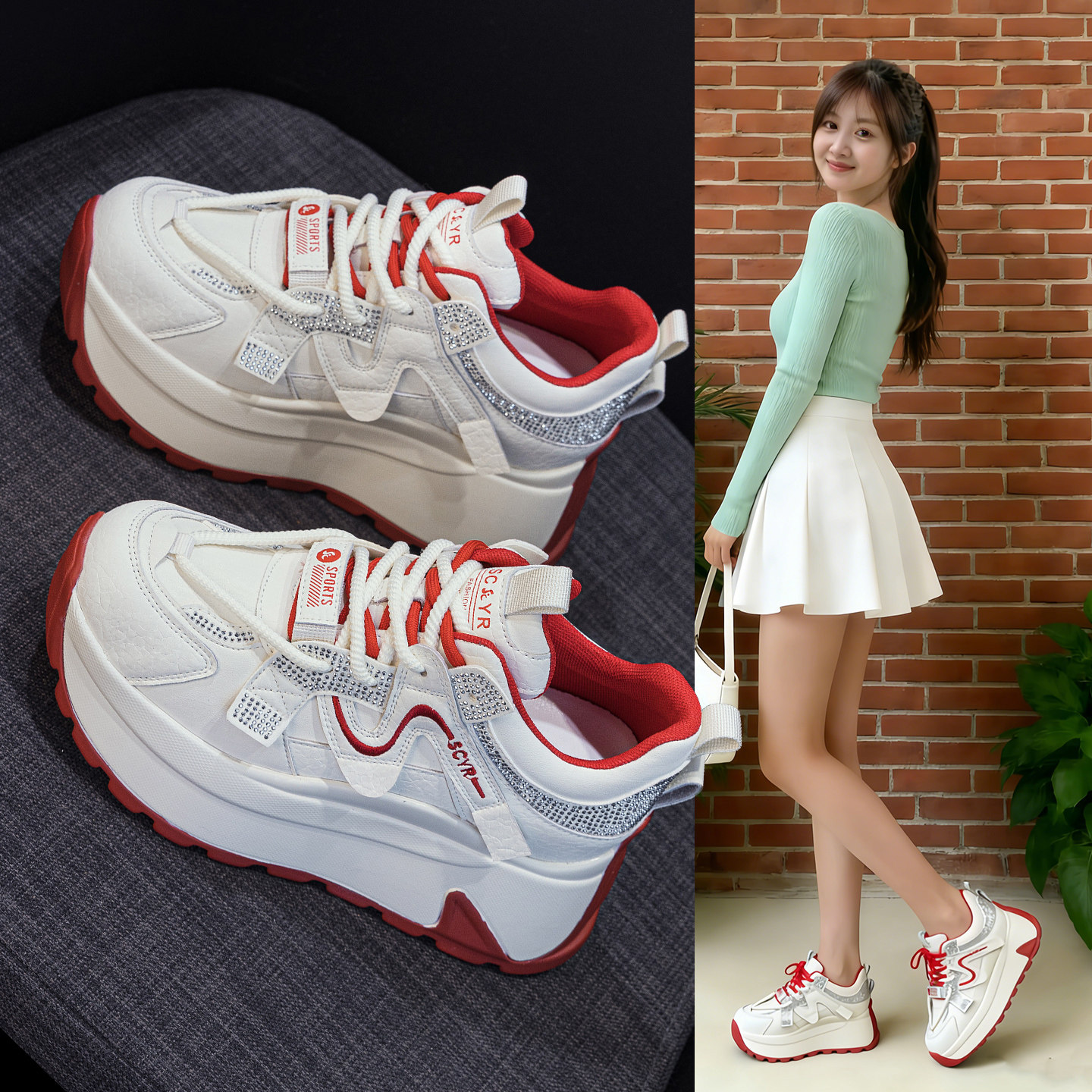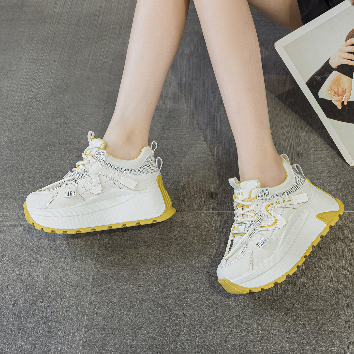 ZFCQ新款厚底小个子内增高阿甘鞋女款2026春8cm显脚小德训小白鞋