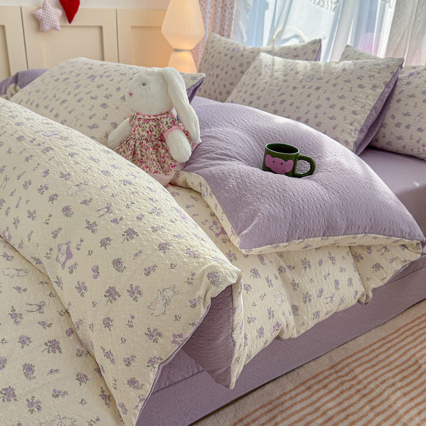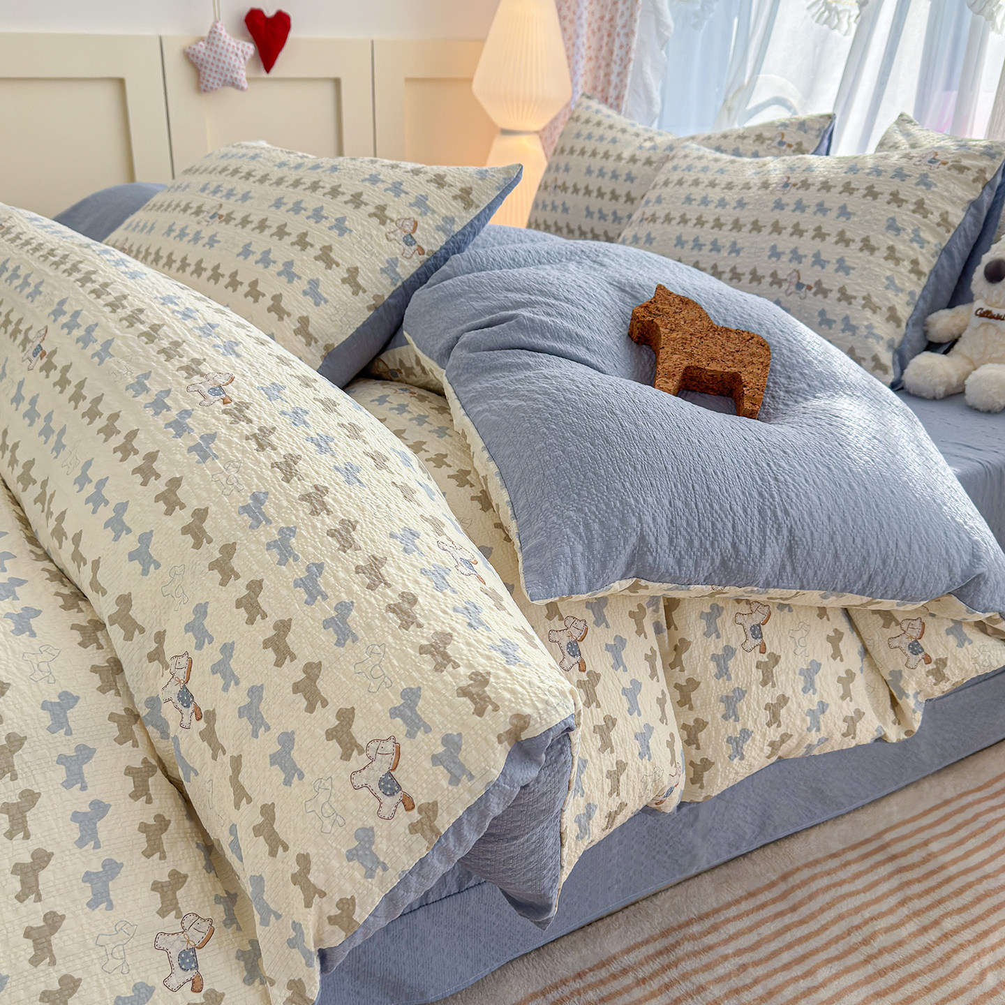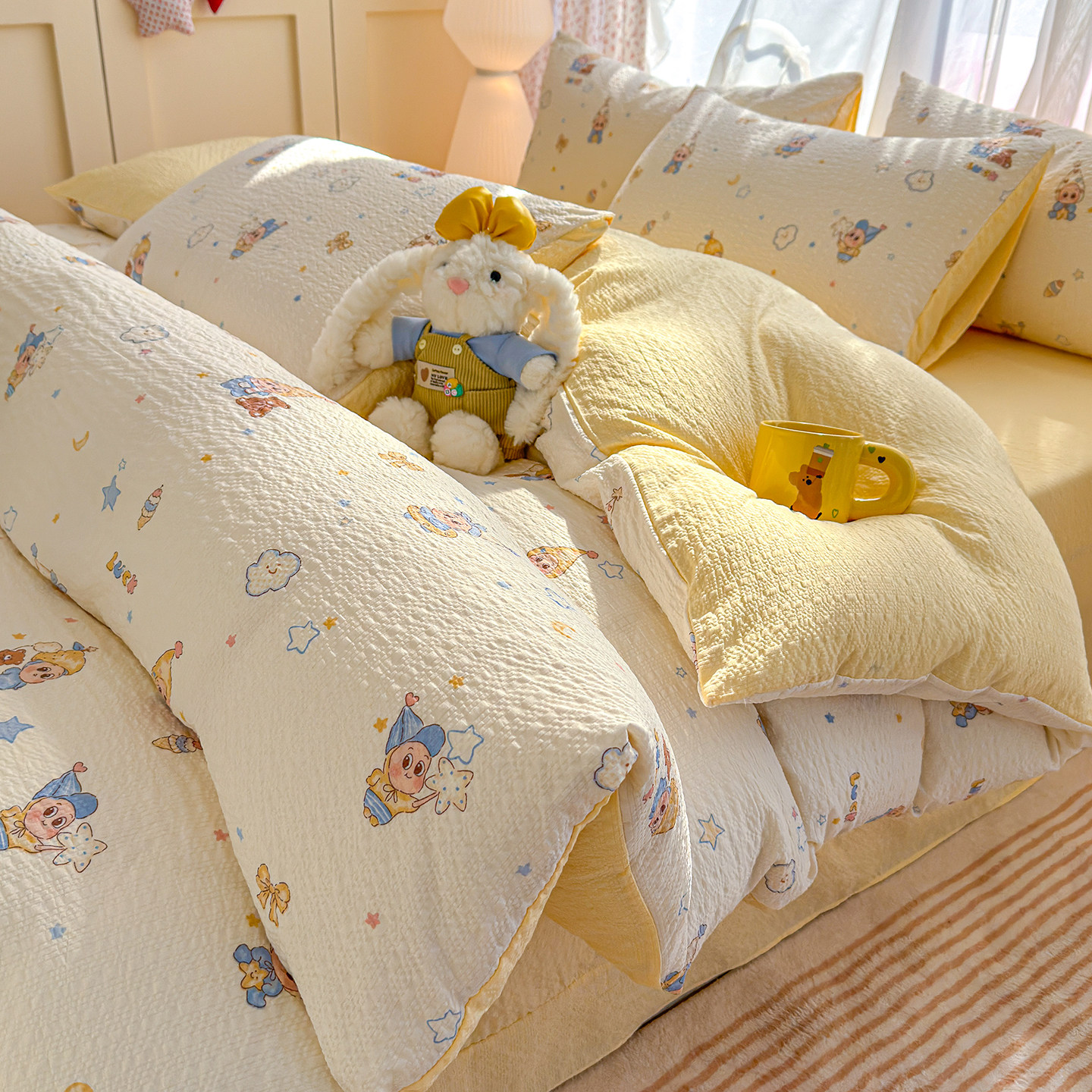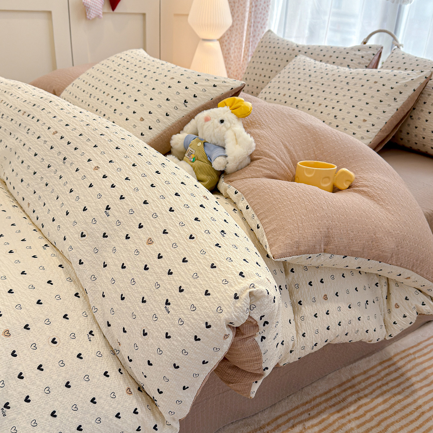 【小乐推荐】2026春夏新款高克重A类小清新泡芙纱皱皱棉四件套