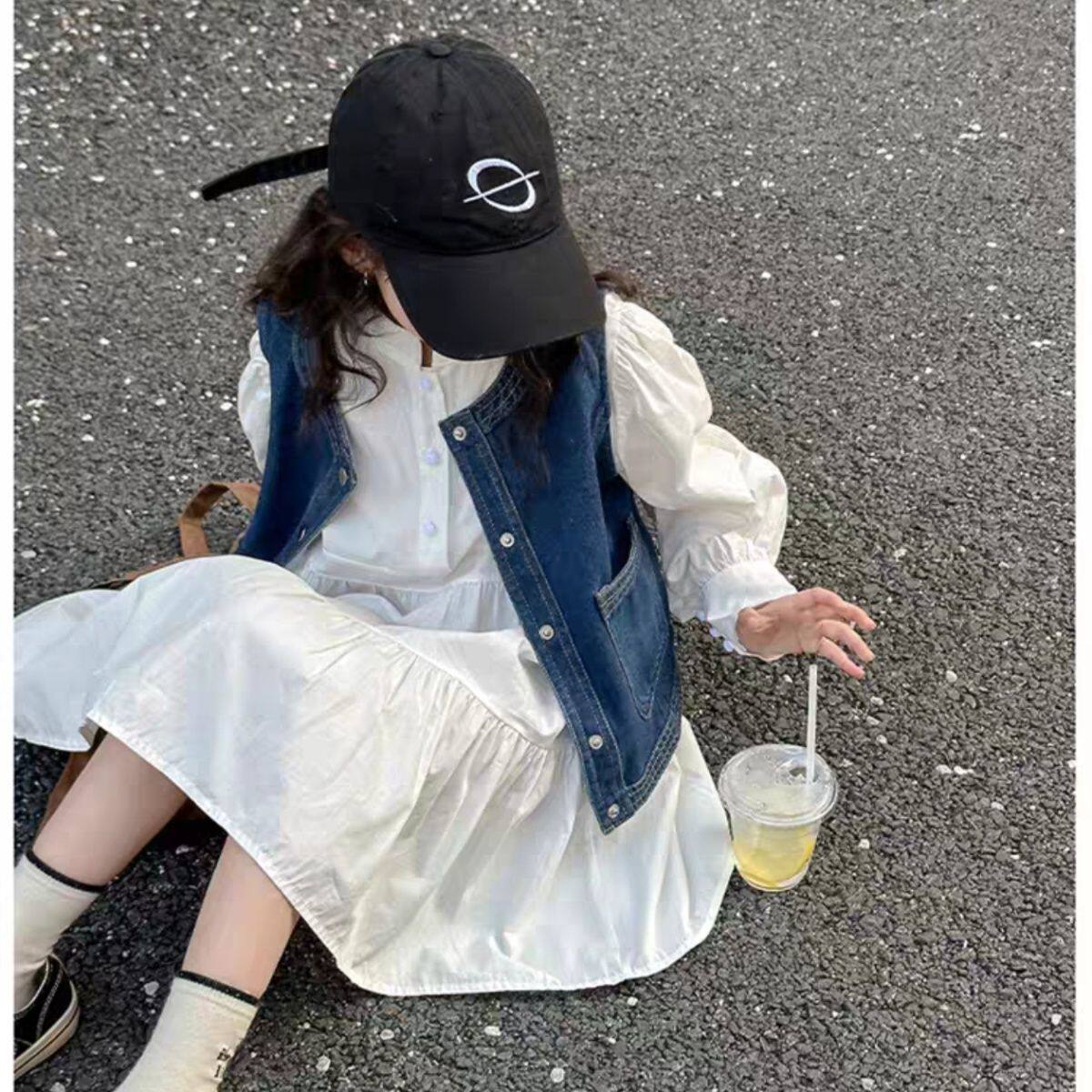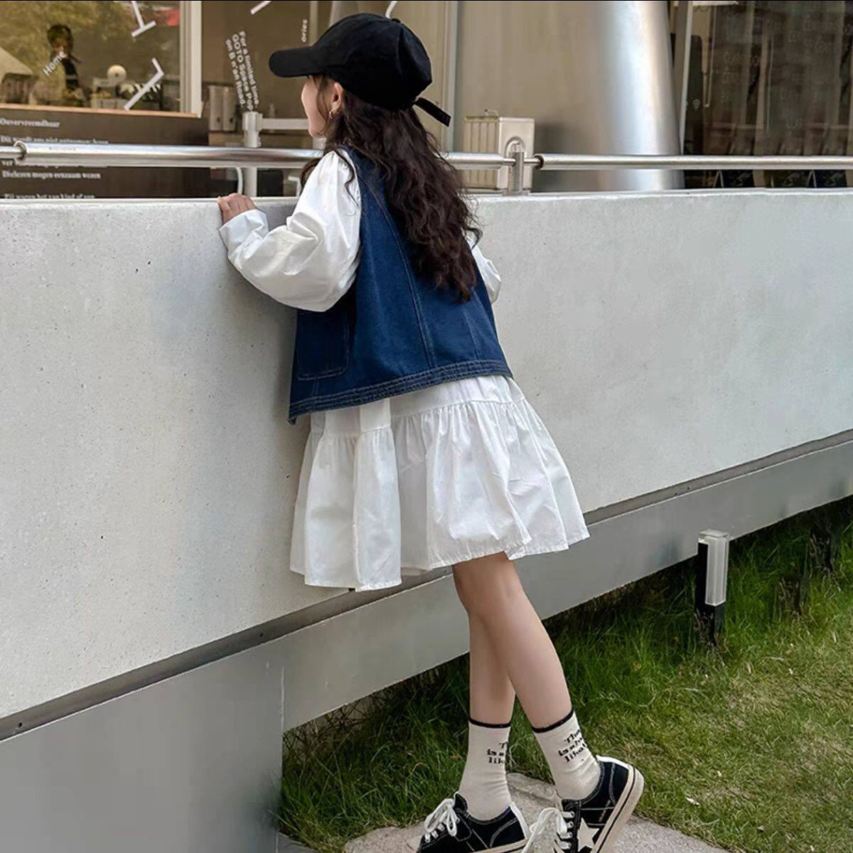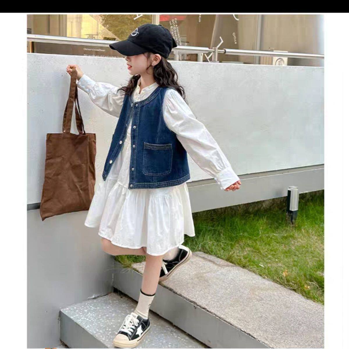 女童拼接衬衫连衣裙牛仔马甲2026新款中大童春秋洋气时尚裙子