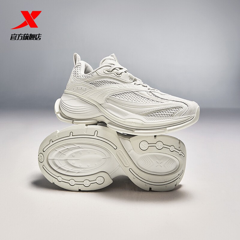特步巴斯克2丨休闲鞋女夏季网面透气复古老爹鞋轻便增高运动鞋男