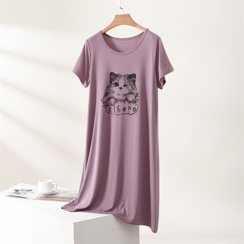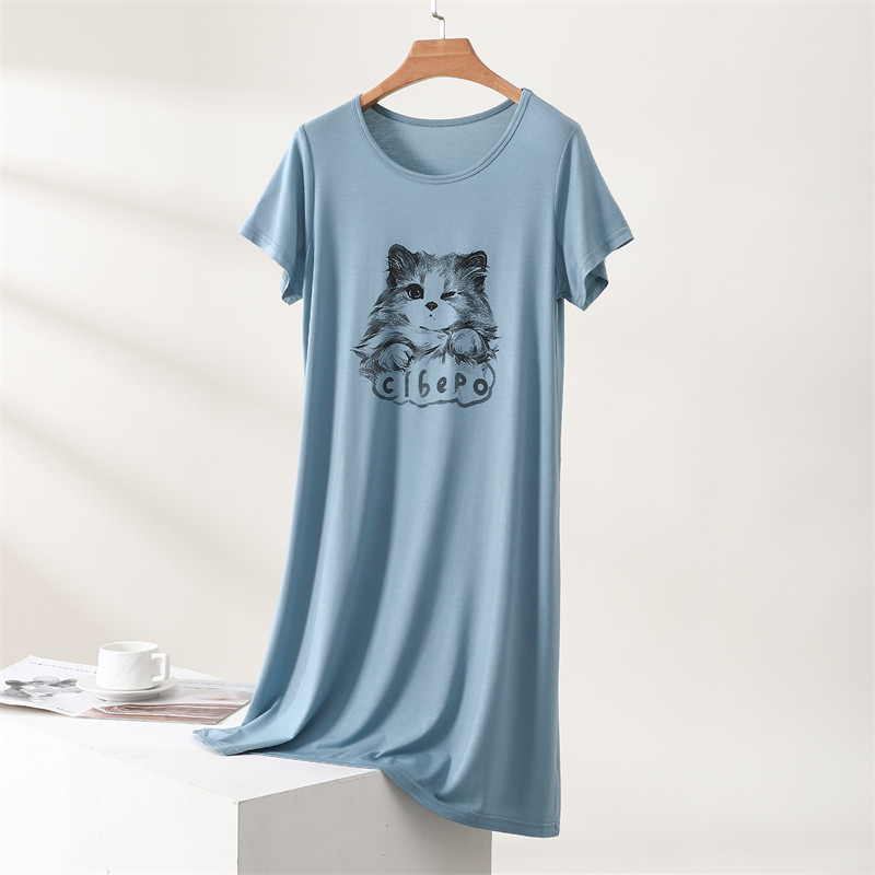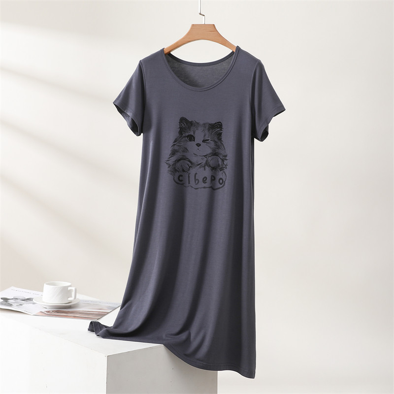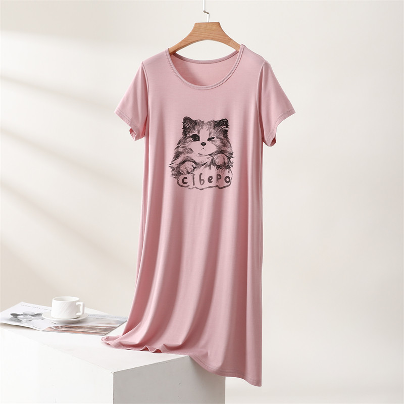 卡通猫咪莫代尔短袖睡裙女2026夏季新款慵懒学生日常家居服连衣裙