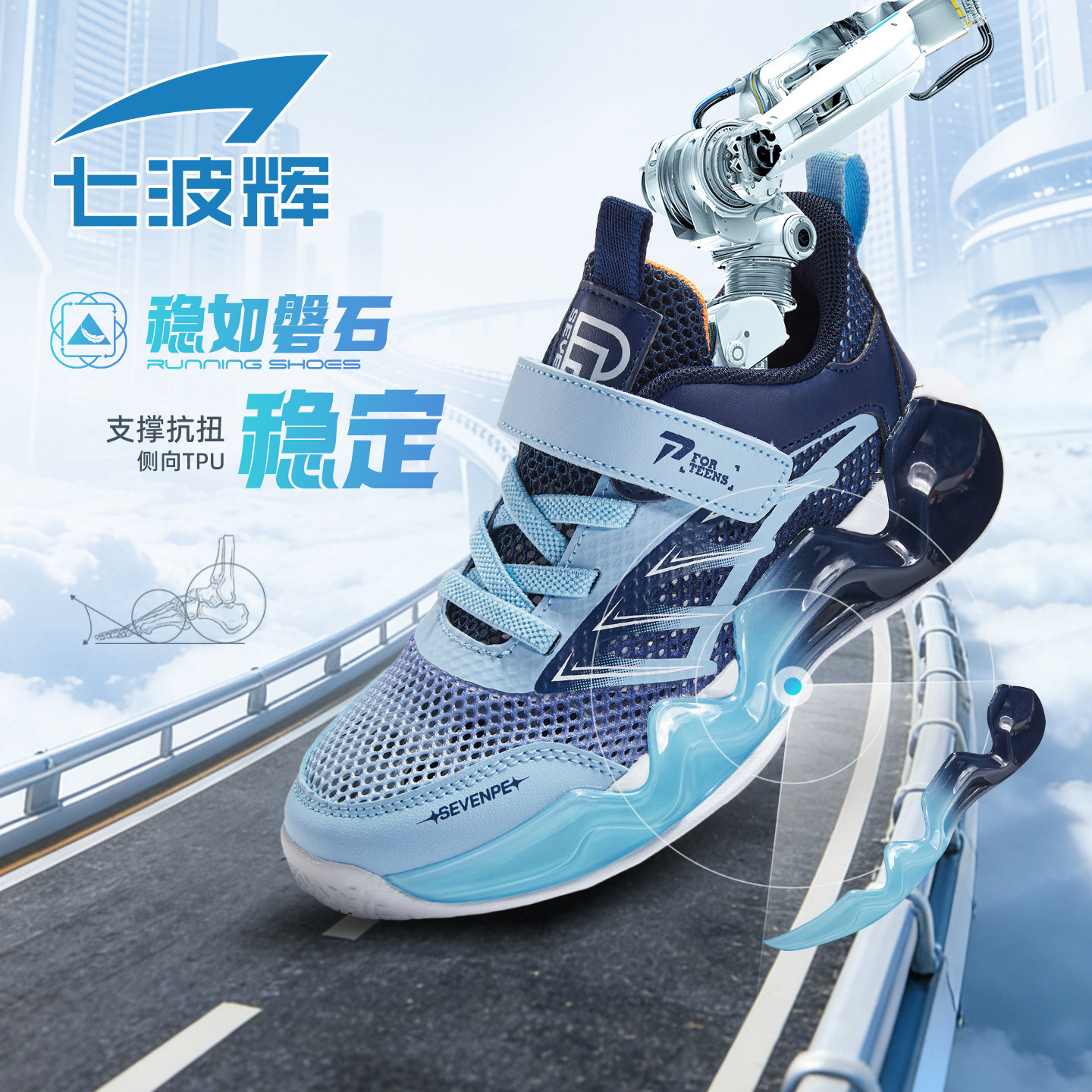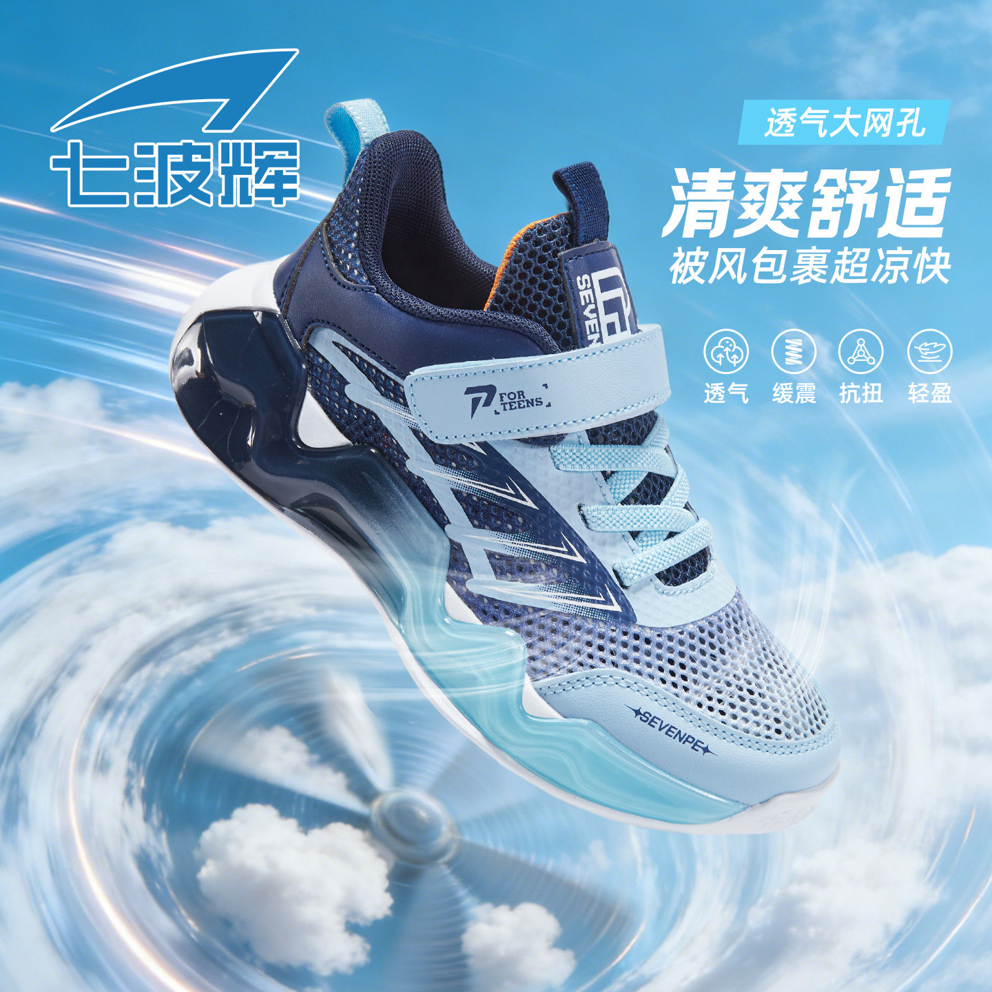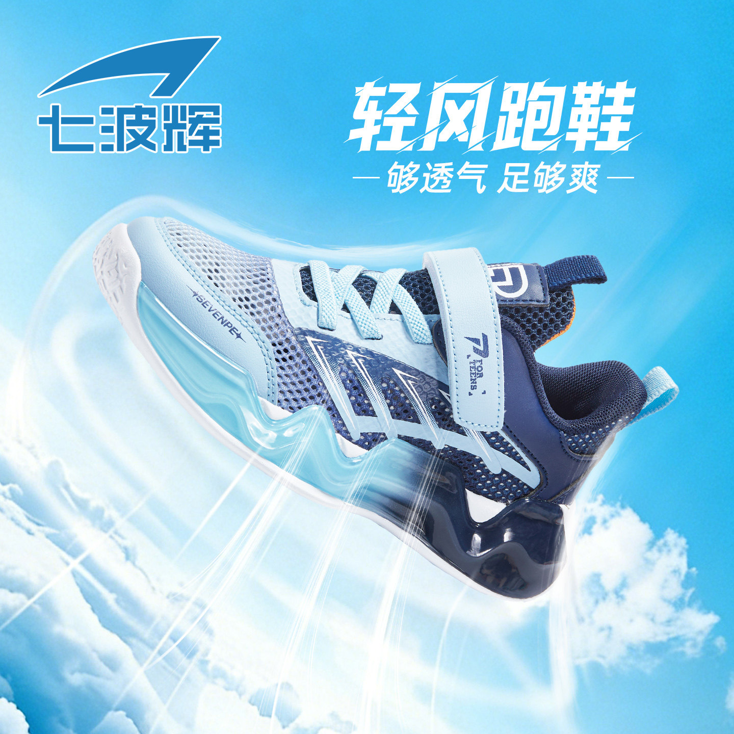 七波辉男童鞋中大童运动鞋男童透气网面2026夏季新款青少年跑步鞋