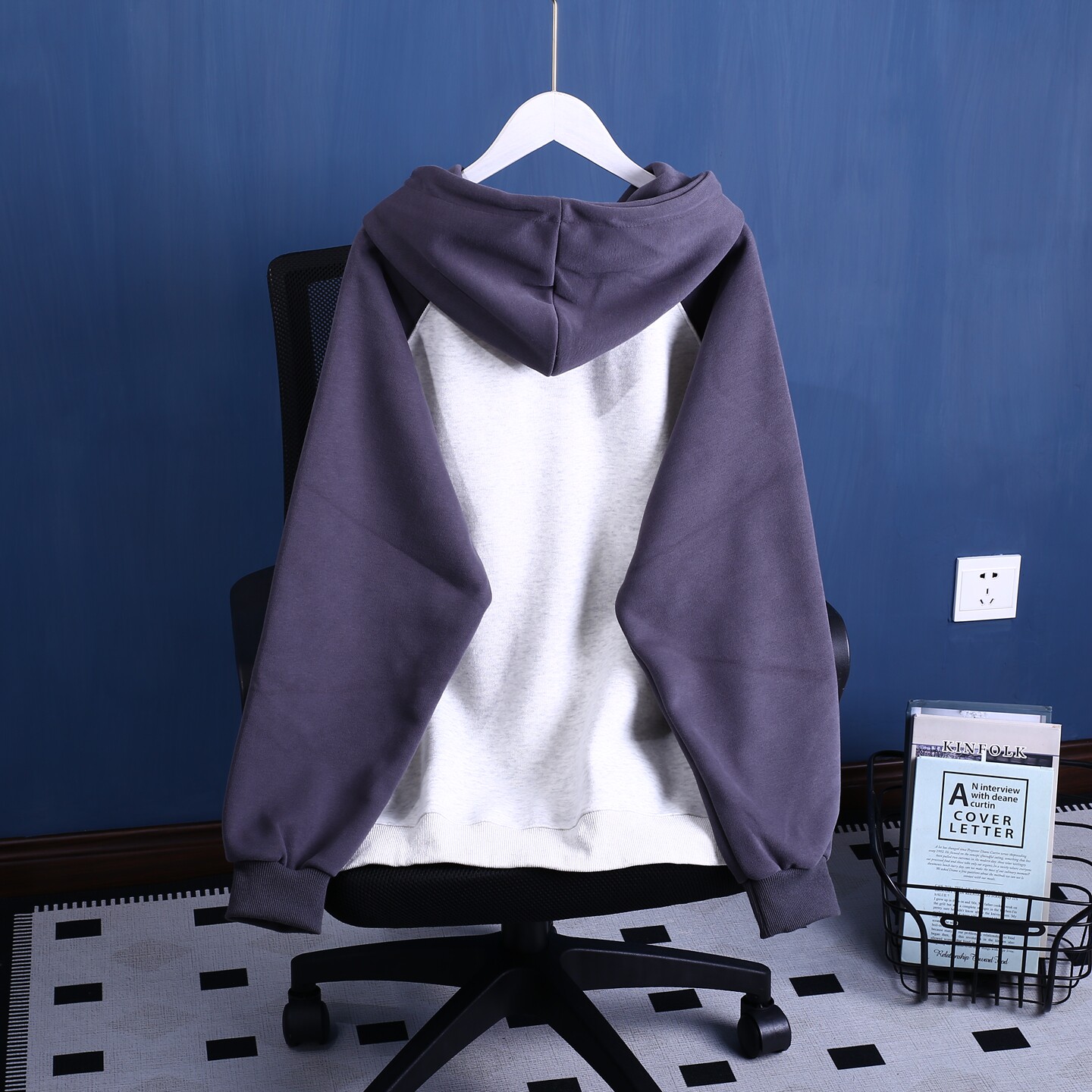 春秋季初中高中生女生大童青少年装休闲拼色针织长袖连帽衫卫衣