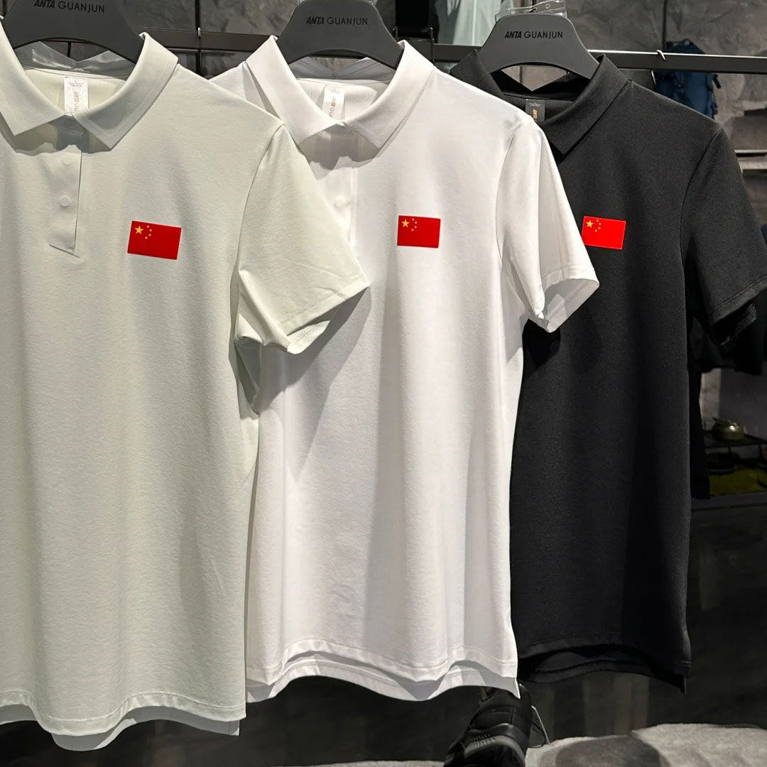 安踏冠军全天候国旗款翻领T恤女智能调温商务短袖POLO衫162520103