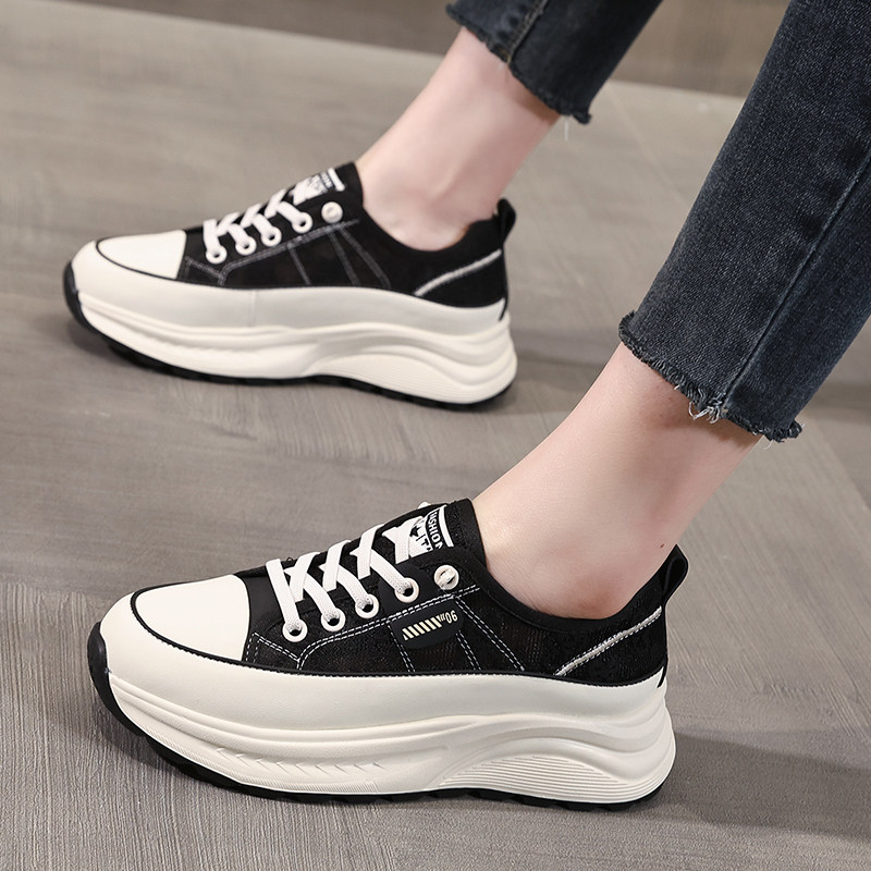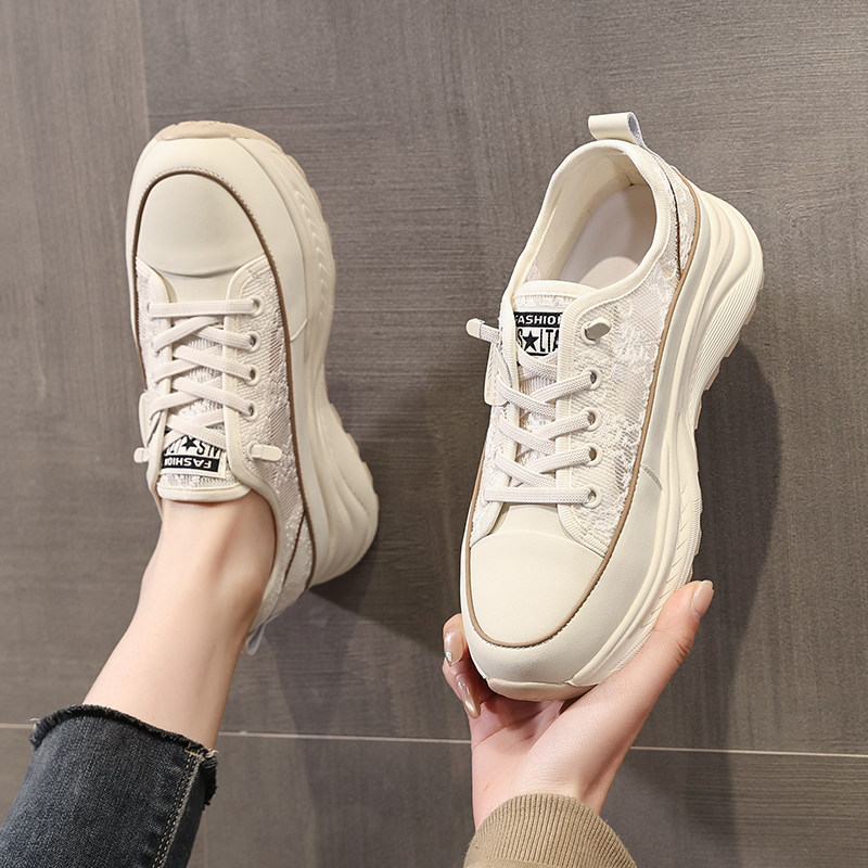 厚底薄款小白鞋女款2026新款夏季网面女鞋一脚蹬阿甘鞋透气网鞋
